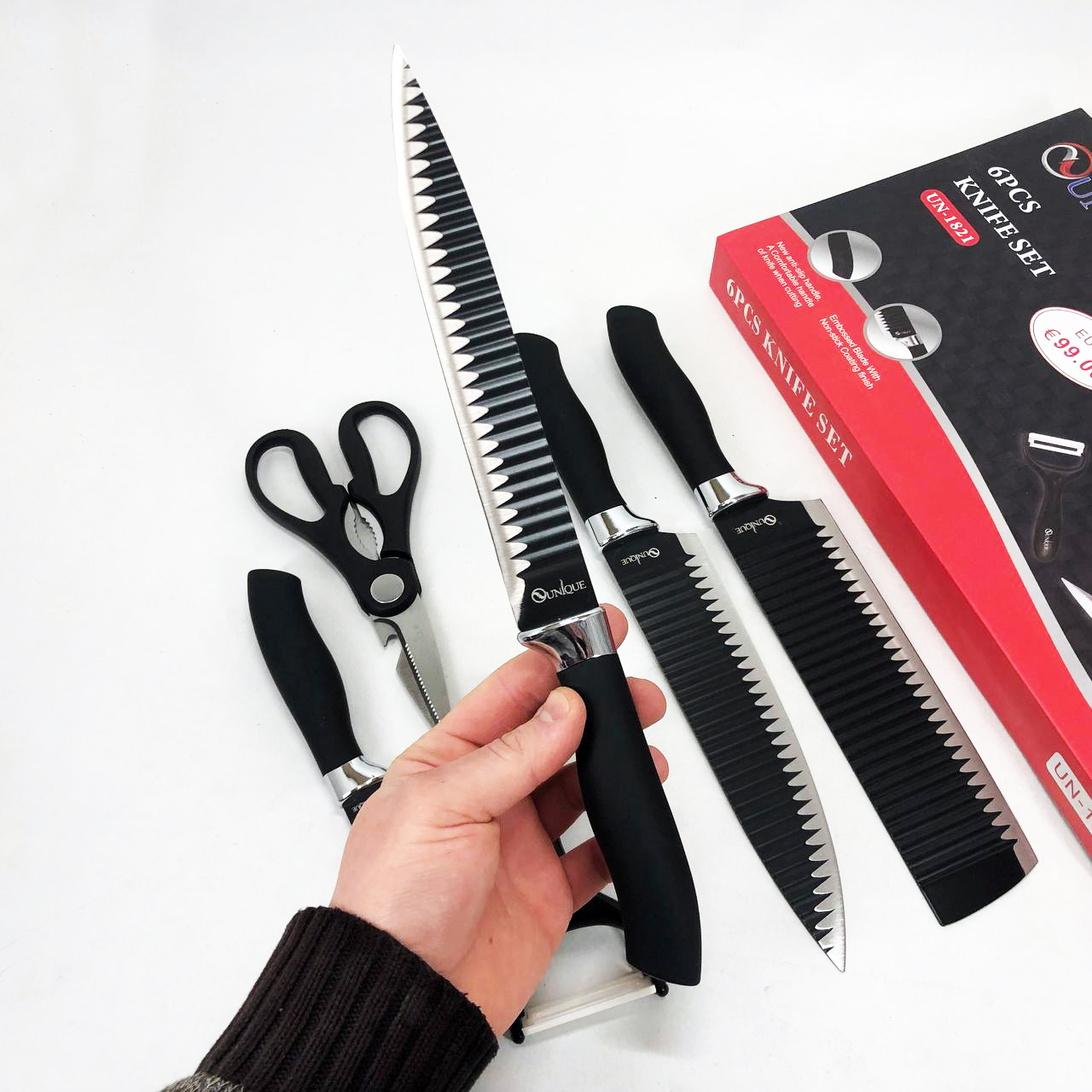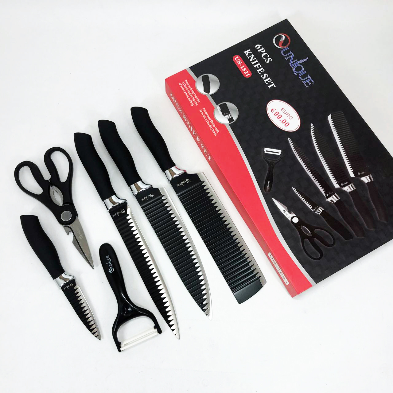Набір ножів UNIQUE UN-1821 кухонні ножі ножиці та овочечистка