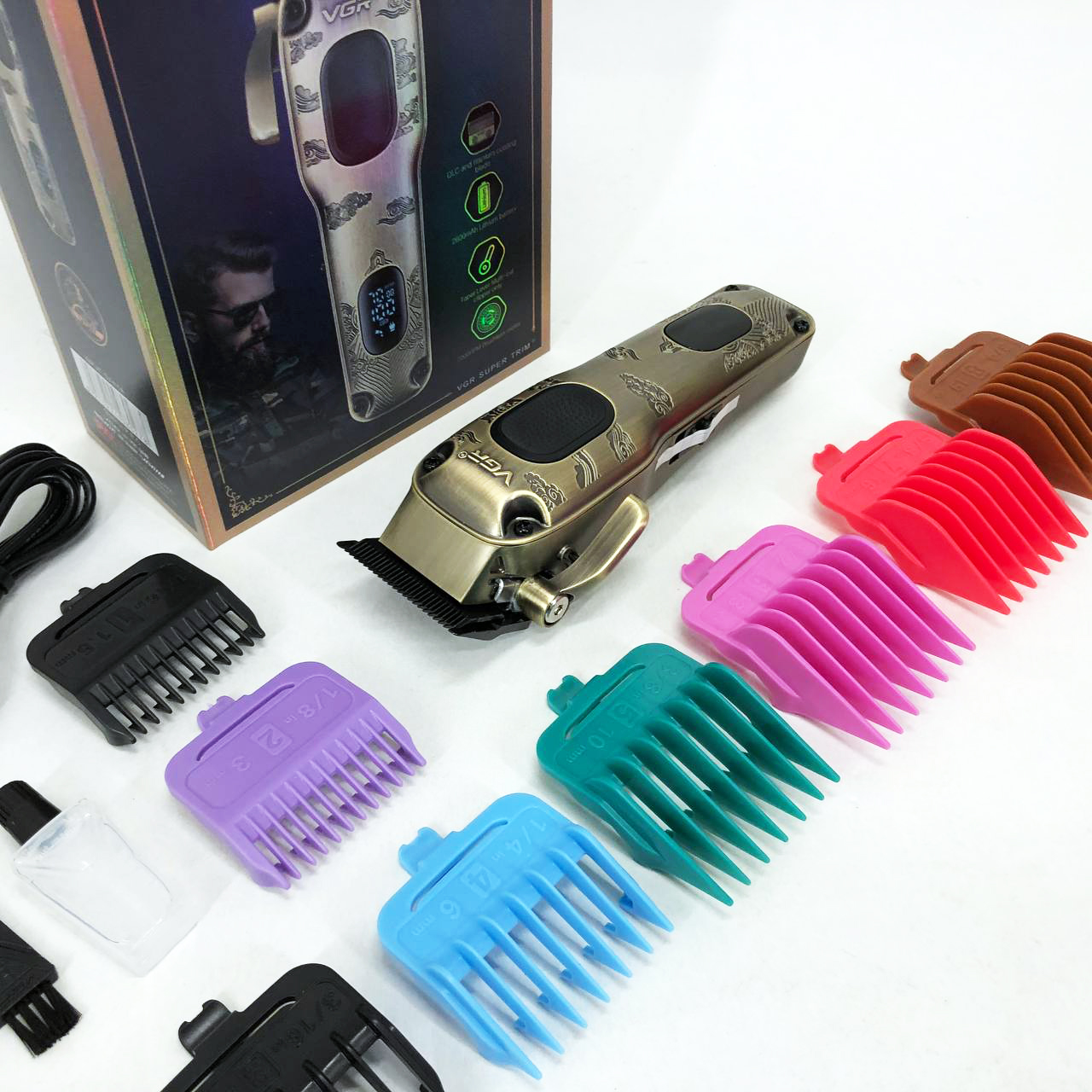 Машинка триммер для стрижки волосся та бороди акумуляторна VGR V-052 з насадками, Професійна