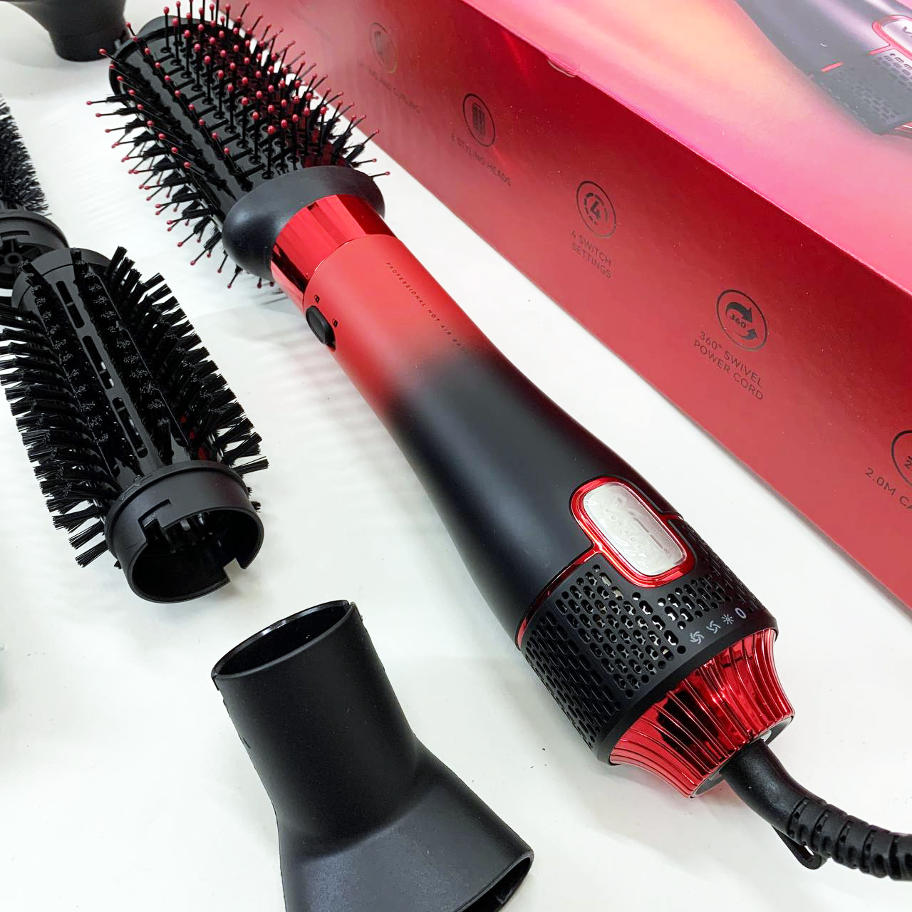 - 8 змінних насадок – овальна та кругла щітка, плоска гребінець, дифузор та інші для створення будь-якого стилю.
