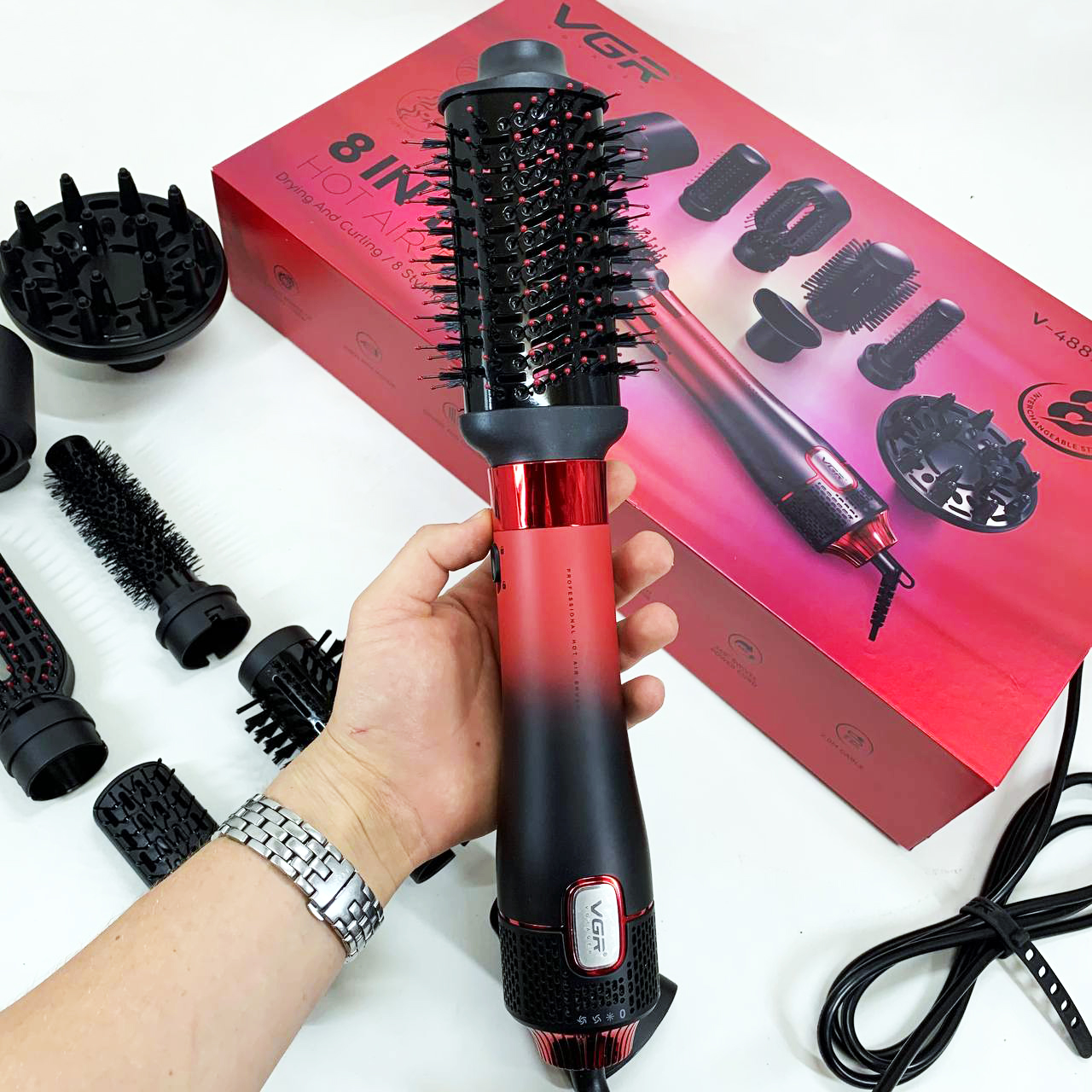 Професійна гаряча повітряна щітка VGR V-488 8-в-1 – це універсальний інструмент для укладання волосся, призначений для різних типів волосся та потреб у укладанні. Поєднуючи функції фена, бігуді, випрямляча та засоби для збільшення обсягу, пристрій пропонує комплексне рішення для досягнення результатів салонної якості будинку.