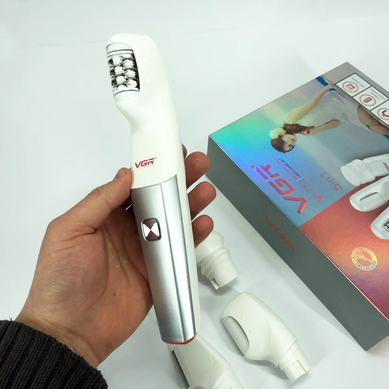 Відчуйте професійний догляд із багатофункціональним епілятором VGR V-752. Цей пристрій 5 в 1 поєднує в собі епілятор, насадку для видалення мозолів, триммер для тіла, триммер для носа і насадку, що очищає, для обличчя. Завдяки цьому ви отримуєте комплексне рішення для догляду за тілом в одному приладі.