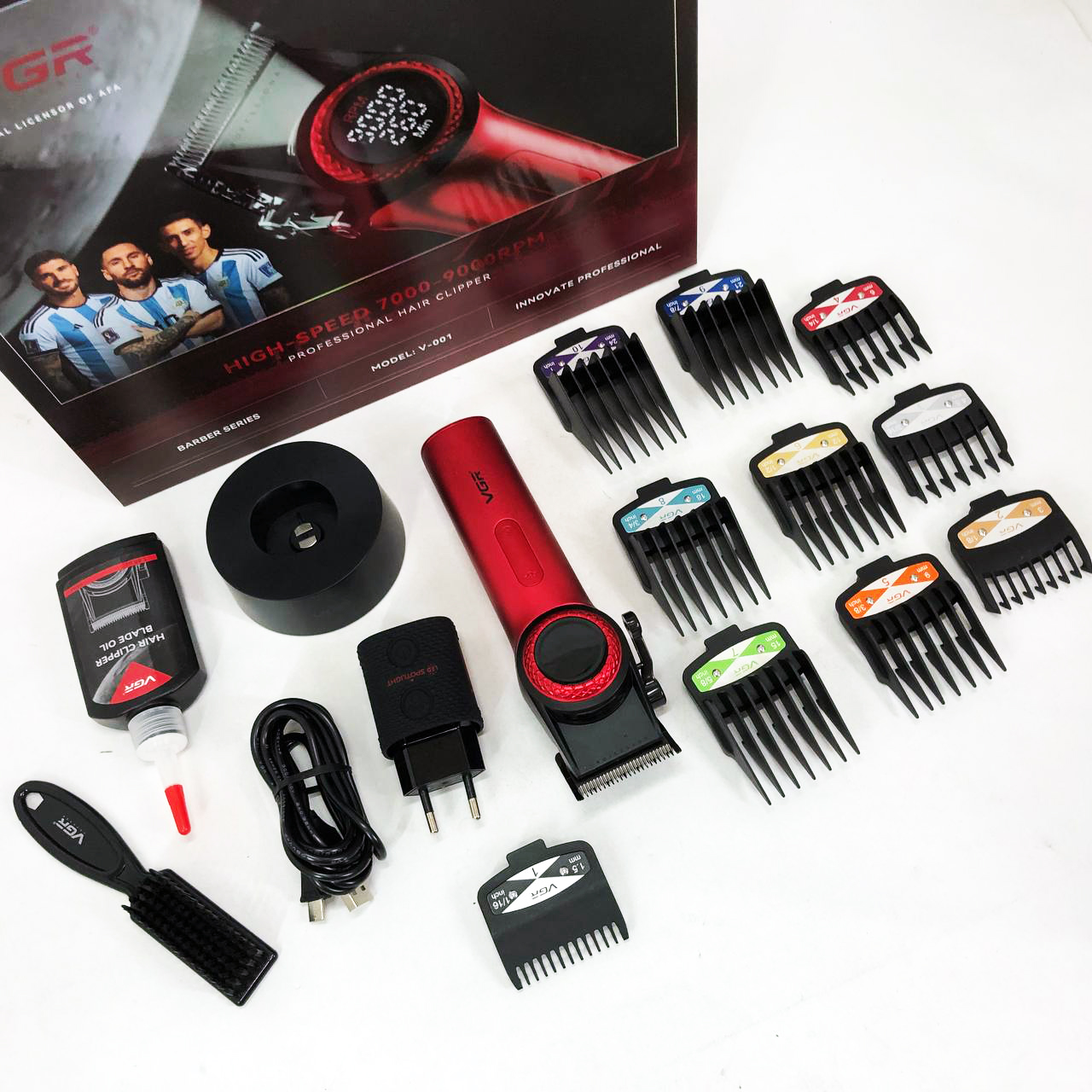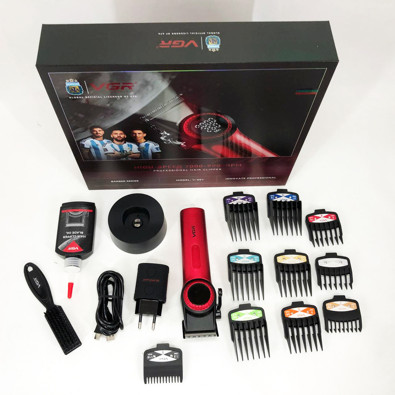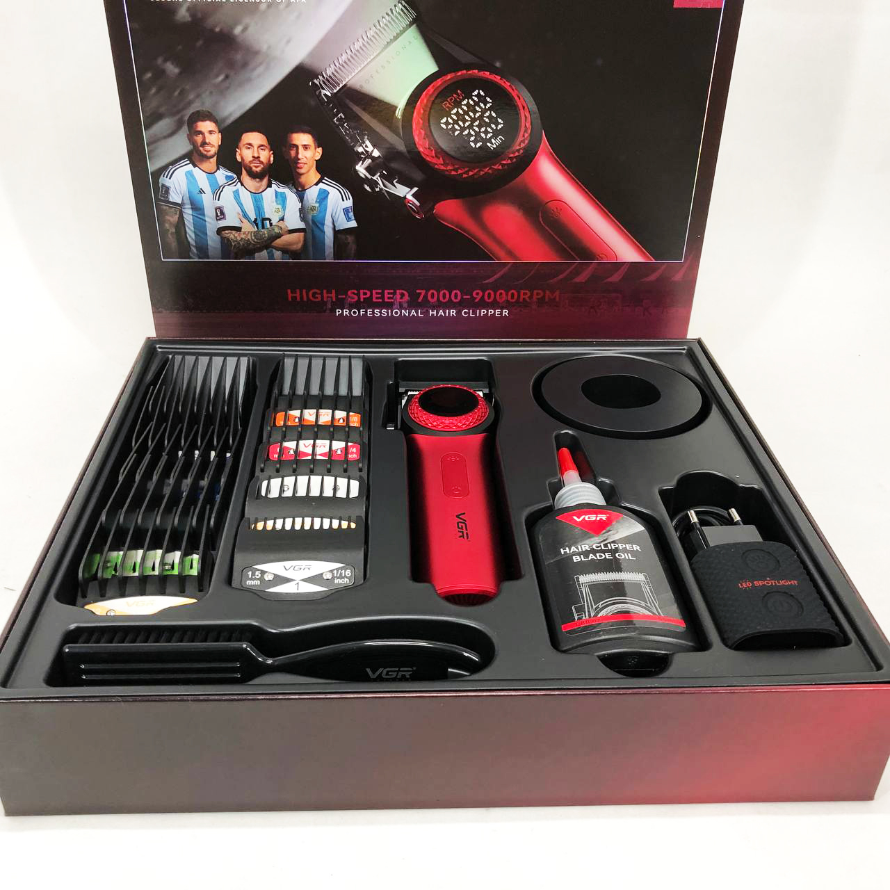 Професійна машинка для стрижки волосся VGR V-001 RED з дисплеєм 9000 об та 10 насадками (1,5-24 мм)