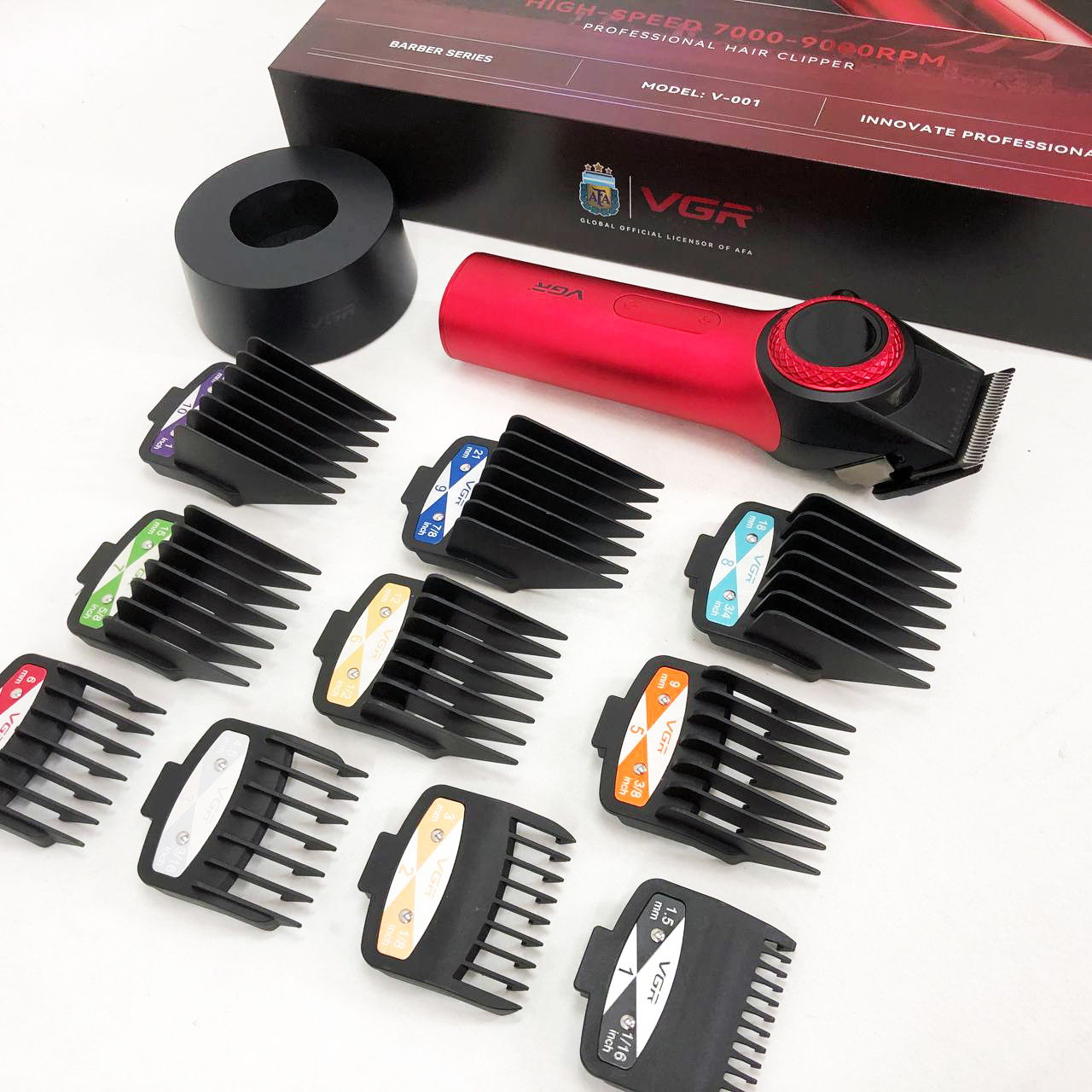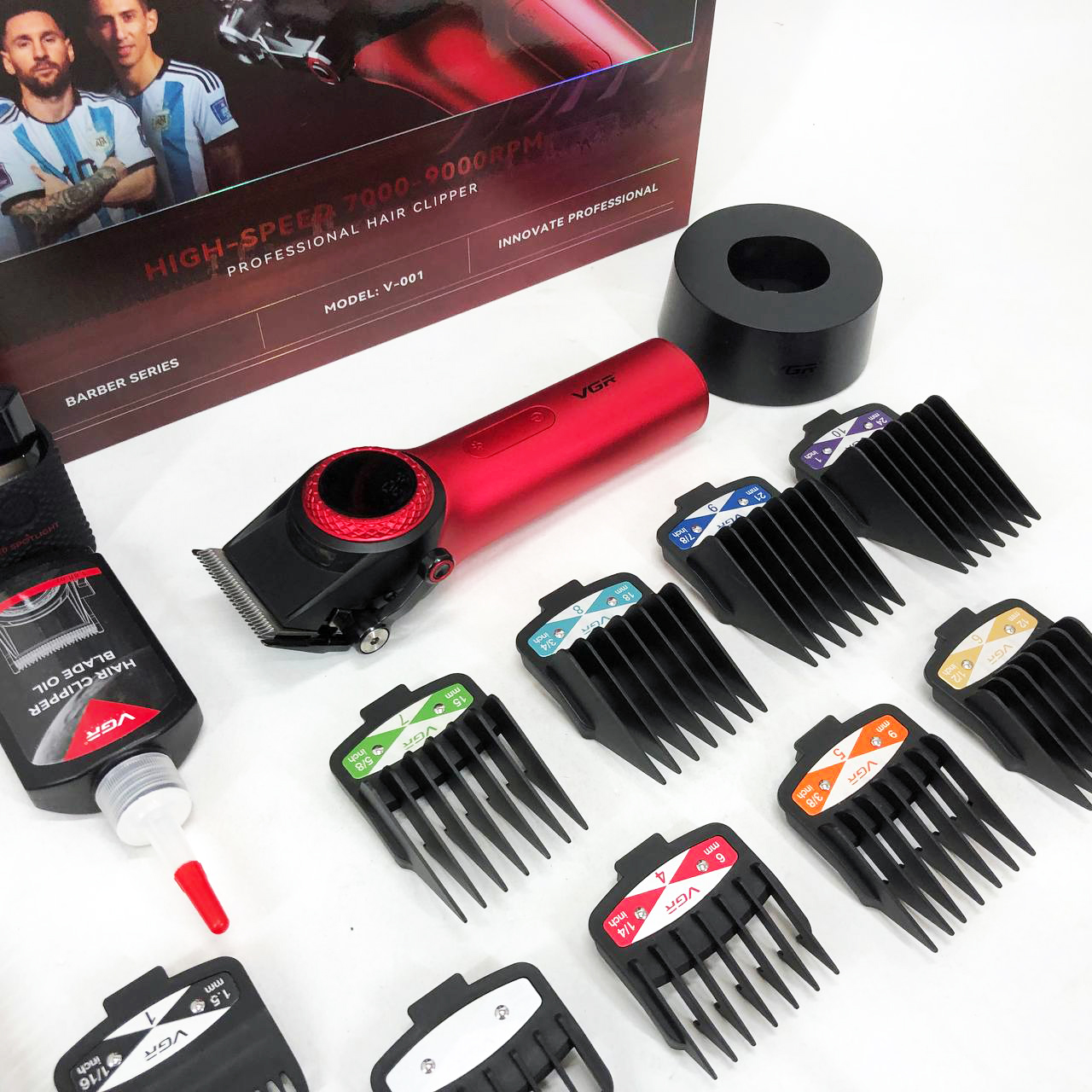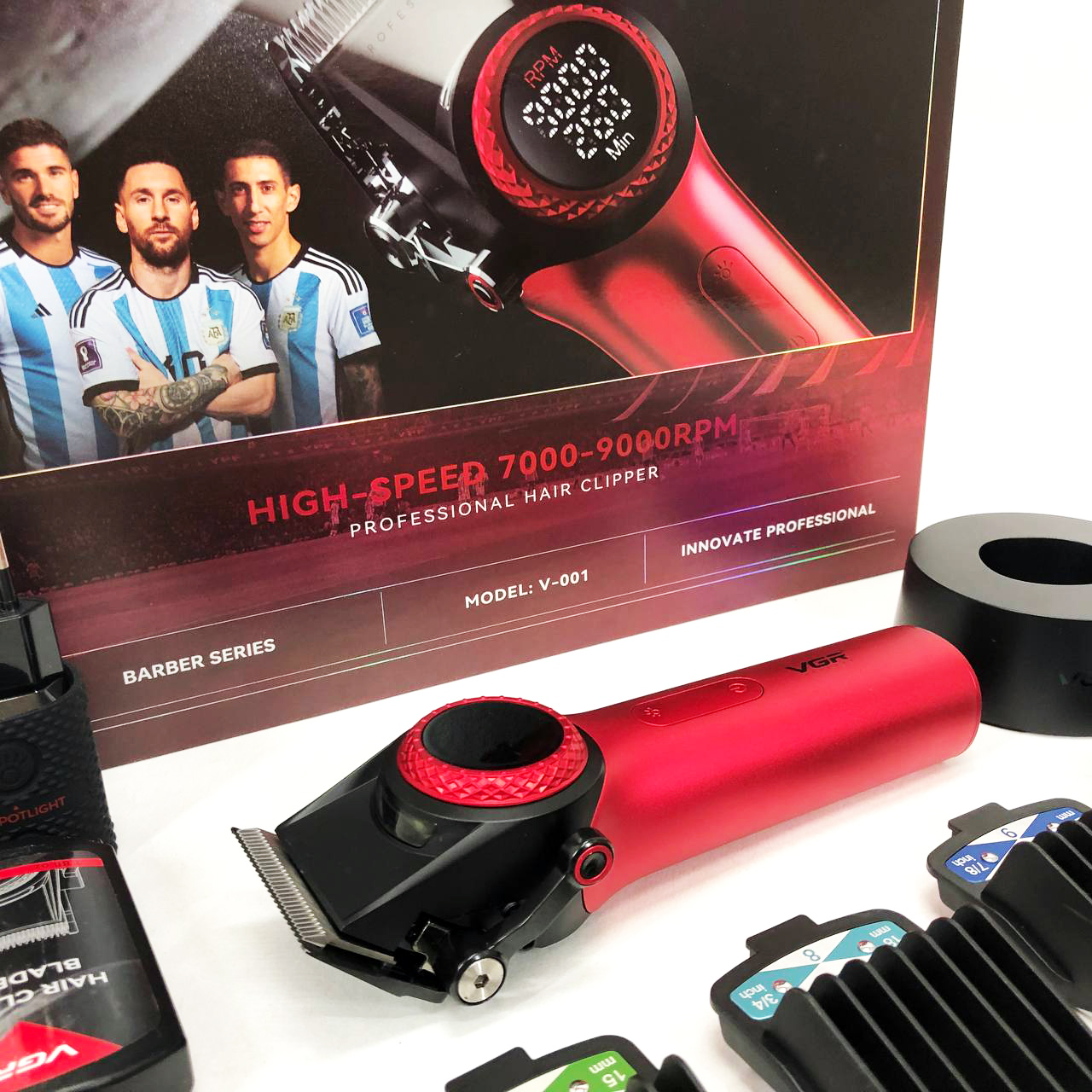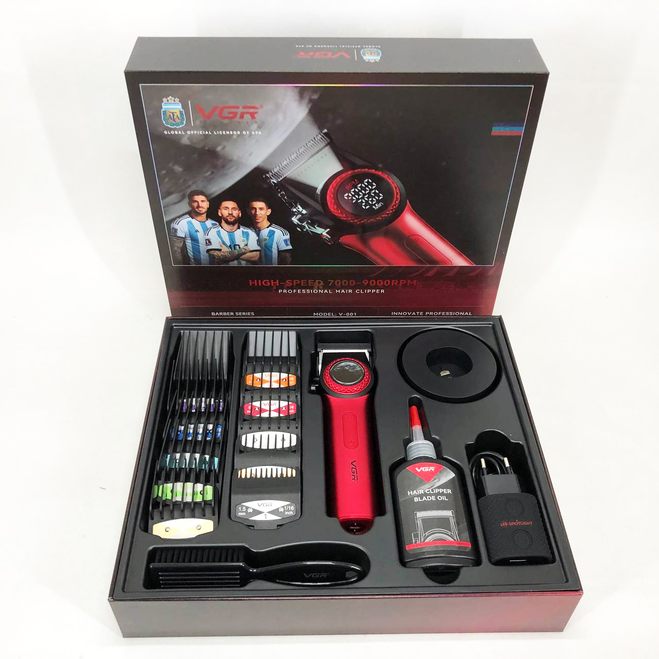 Професійна машинка для стрижки волосся VGR V-001 RED з дисплеєм 9000 об та 10 насадками (1,5-24 мм)