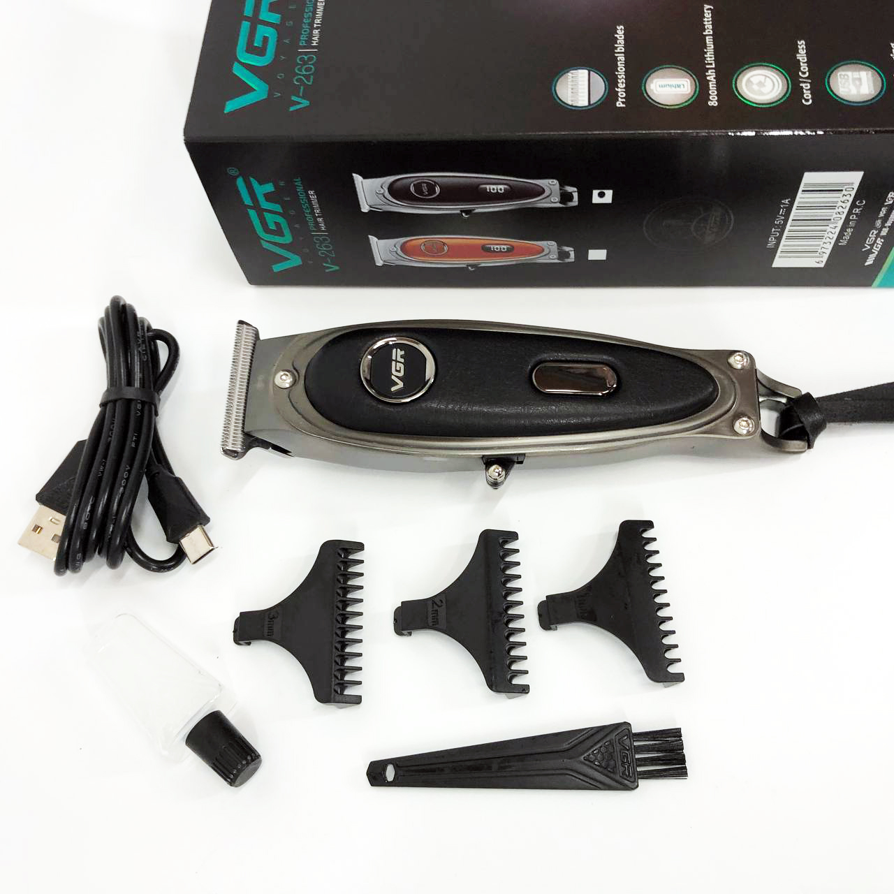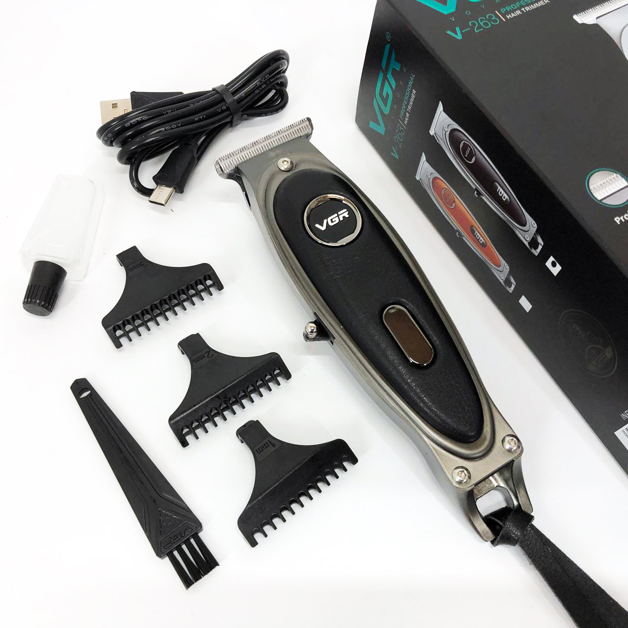 Тример акумуляторний VGR V-263 – це потужний та надійний інструмент для професійного та домашнього використання. Вона забезпечує точність і комфорт завдяки гострим лезам з DLC покриттям та вбудованому роторному двигуну, що працює зі швидкістю 7000 обертів на хвилину. Ця машинка дозволяє стригти волосся на різну довжину завдяки 4 насадкам, що ідеально підходять для створення стильних зачісок.