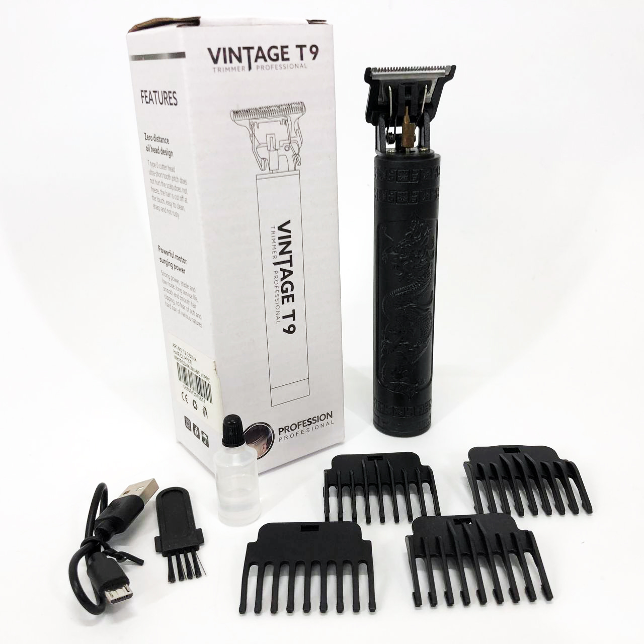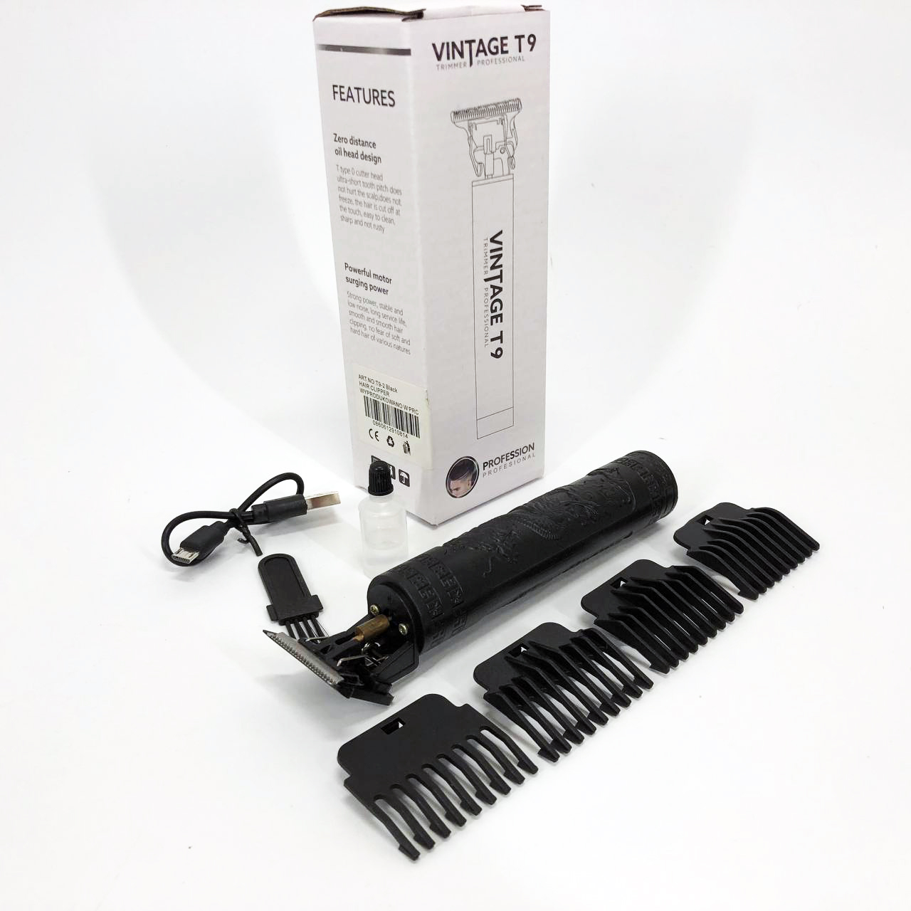 Машинка для стрижки волосся Vintage T9-2 BLACK 4 насадки