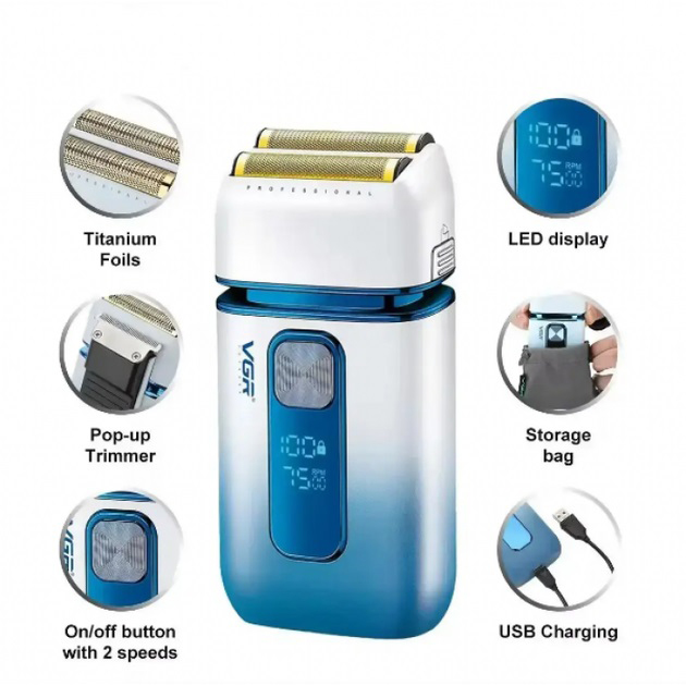 - Тривалість використання: Одного повного заряду достатньо для 120 хвилин безперервної роботи, що робить бритву V-362 відмінним вибором для щоденного використання.