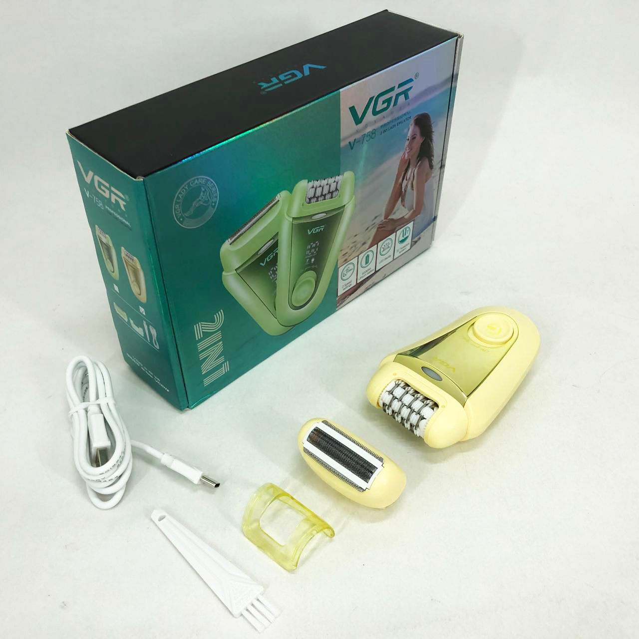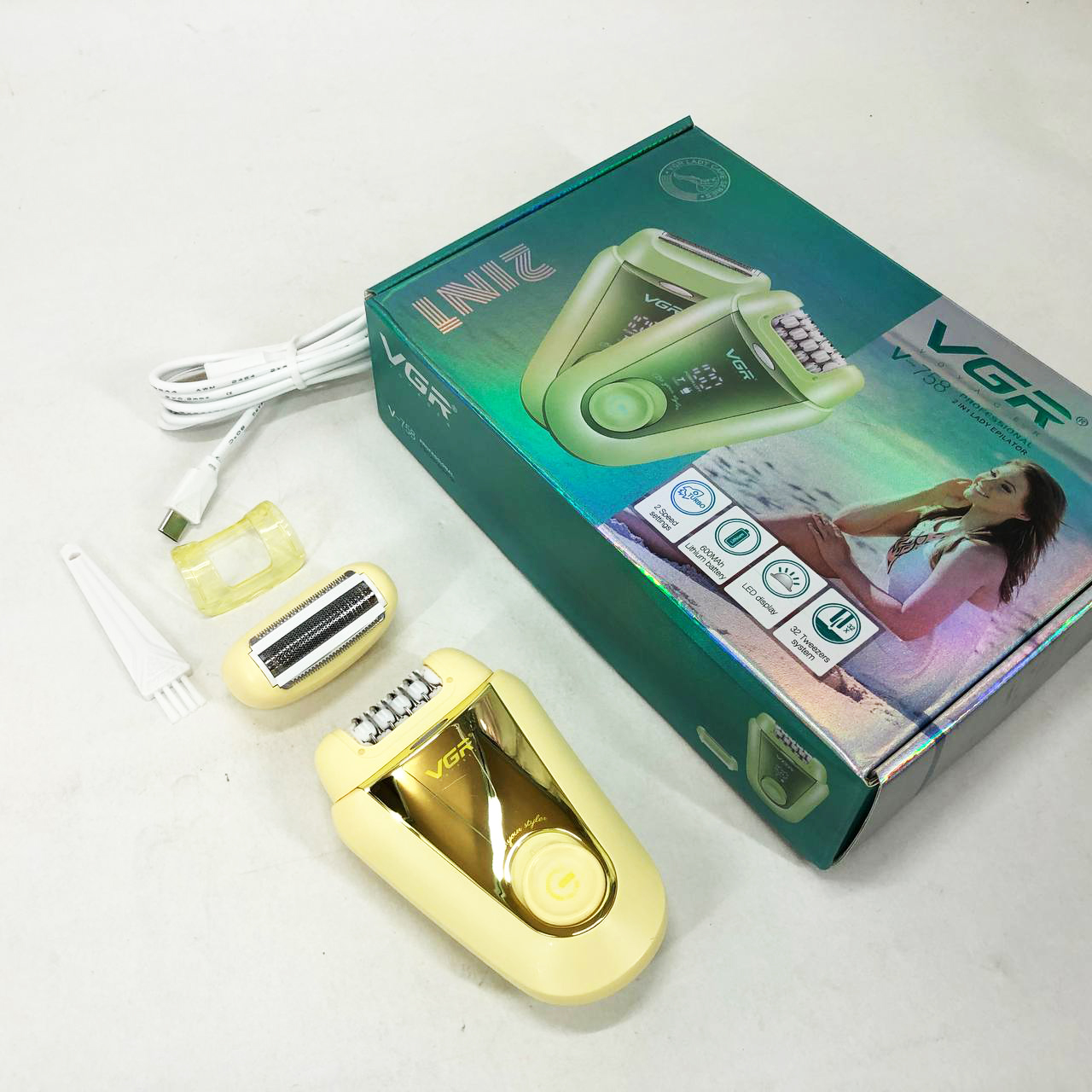 - Подвійна функціональність: Завдяки змінним насадкам, VGR V-758 легко перетворюється з епілятора в електробритву, для тіла.