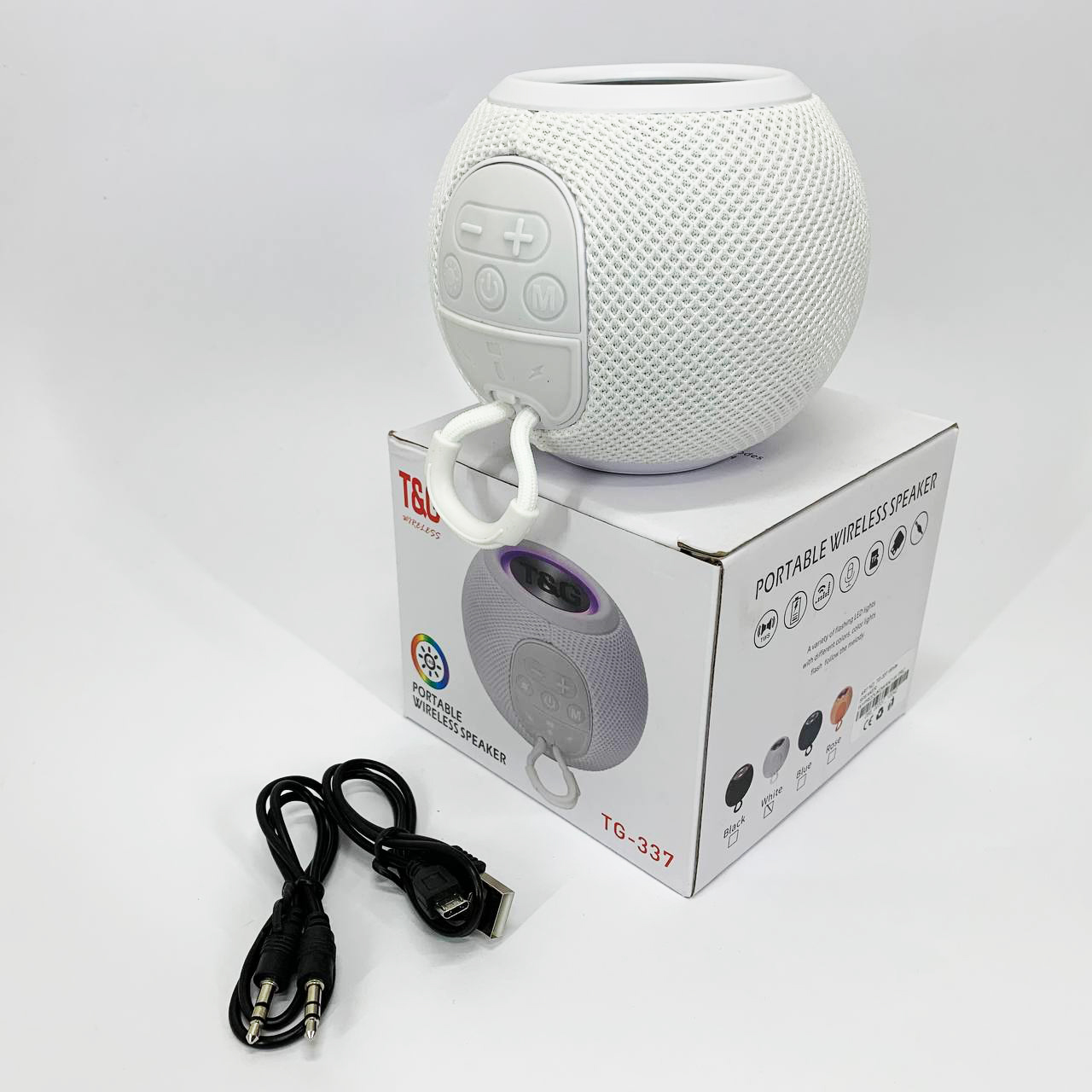 Бездротова потужна колонка TG337 з Bluetooth, RGB-підсвічуванням та радіо. Колір: білий