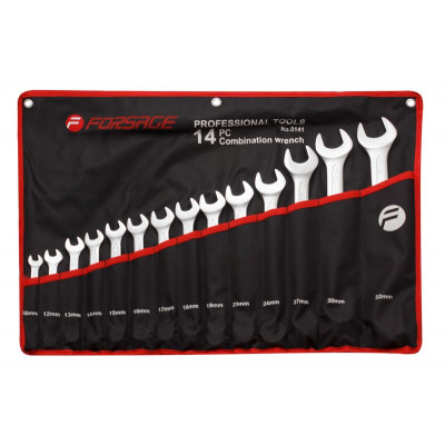Набір ключів комбінованих 14пр. (10, 12-19, 21, 24, 27, 30, 32мм) на полотні Forsage F-5141