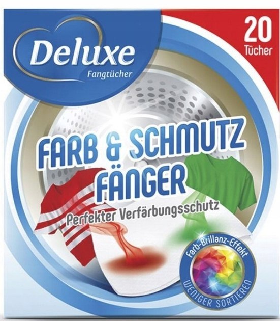При пранні одягу змішаних кольорів гаряча вода та миючий засіб розріджують барвник у білизні, викликаючи його активацію. Серветки для уловлювання кольору під час прання Deluxe Farb & Schmutz Fanger спеціально розроблені та діють як магніт, притягуючи та видаляючи фарбу та бруд під час прання, забезпечуючи безпечне прання.