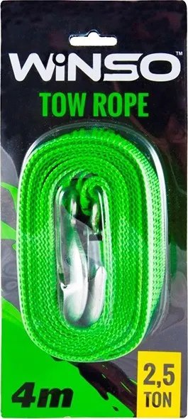 Буксирувальний трос Winso витягне і витримає автомобіль, що безнадійно застряг. Виконаний за стрічковим типом, він має ряд переваг як у зберіганні, так і у використанні. Максимальне тягове зусилля знаходиться на рівні 2,5 т. Важливо розуміти, що для надійного зчеплення автомобіль повинен важити вдвічі менше за максимальне навантаження, тому що слід враховувати імпульсні ривки при рушанні з місця, при яких навантаження на трос значно зростає. Трос виконаний з поліпропілену - еластичного та міцного матеріалу.