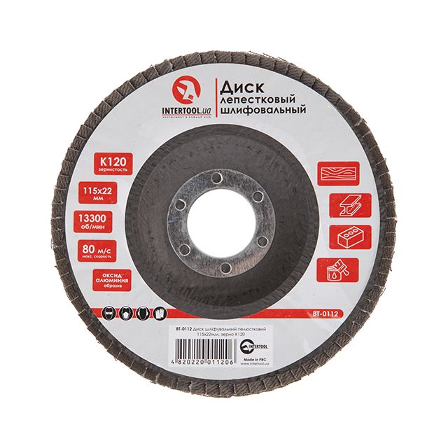 Диск шліфувальний пелюстковий 115*22 мм, K120 INTERTOOL BT-0112