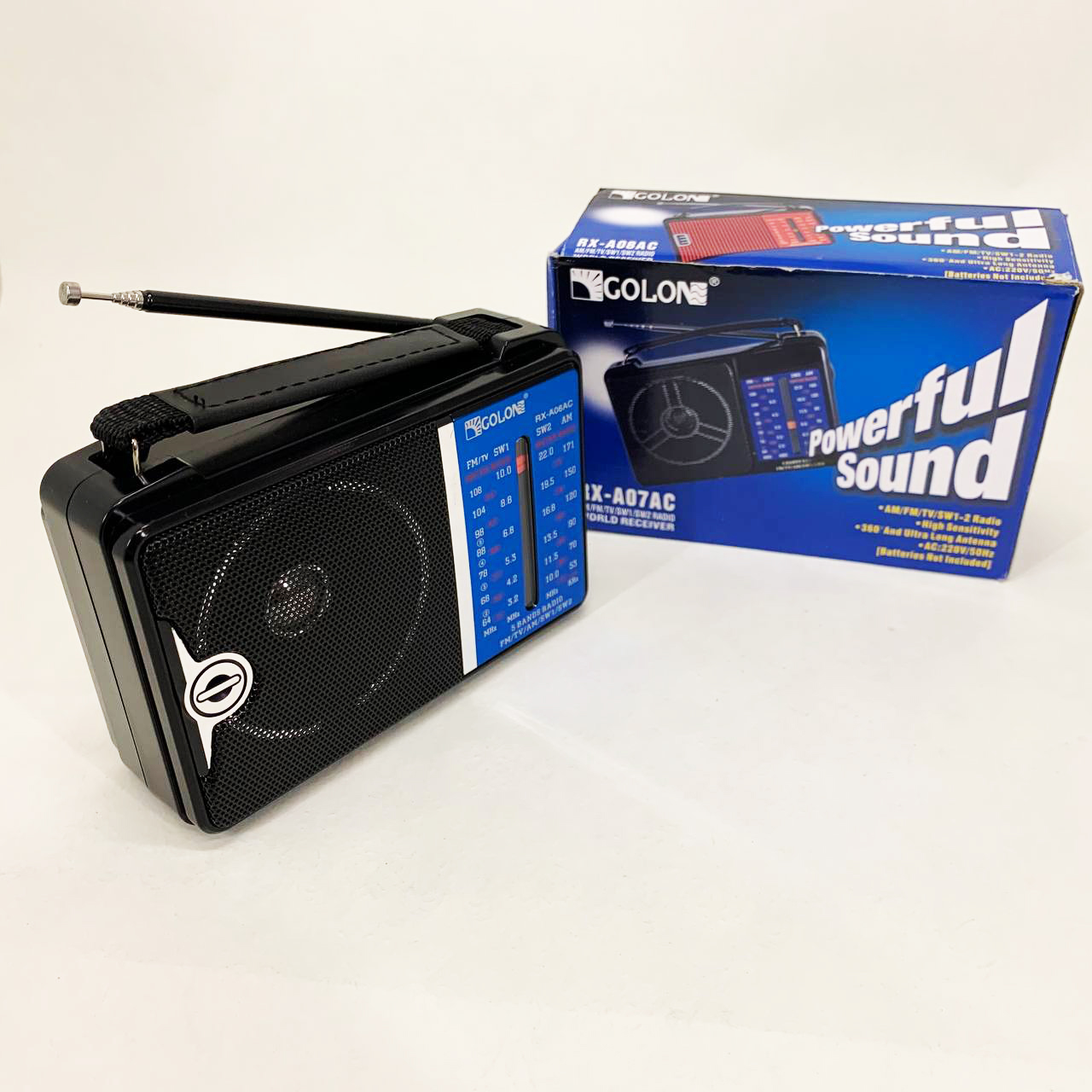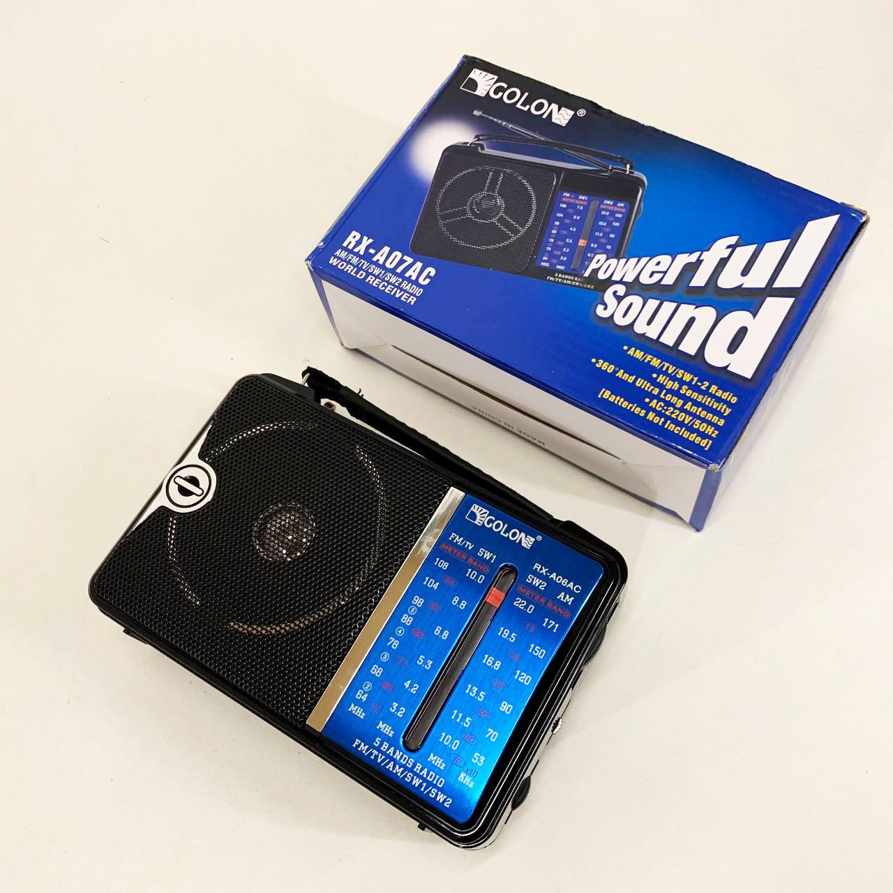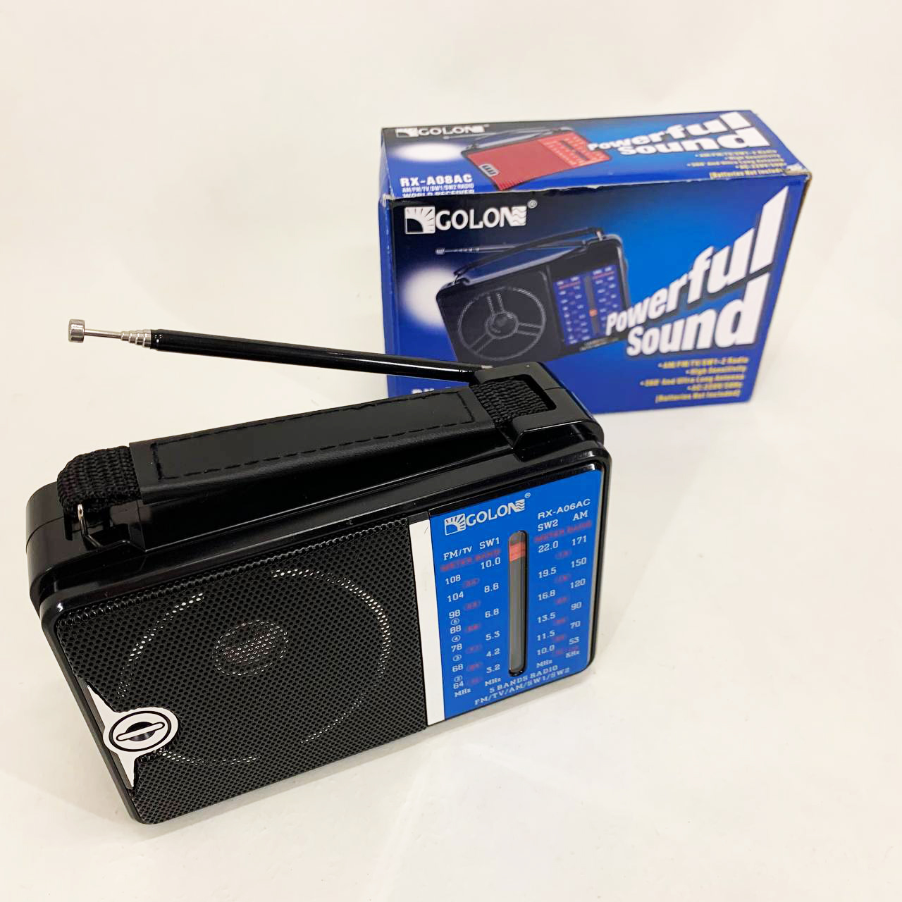 Програвач GOLON RX-A06 AC – це хороший попутник для поїздок, подорожей та прогулянок. Легкий та зручний радіоприймач працює на радіо частотах AM, FM, SW1, SW2, TV.