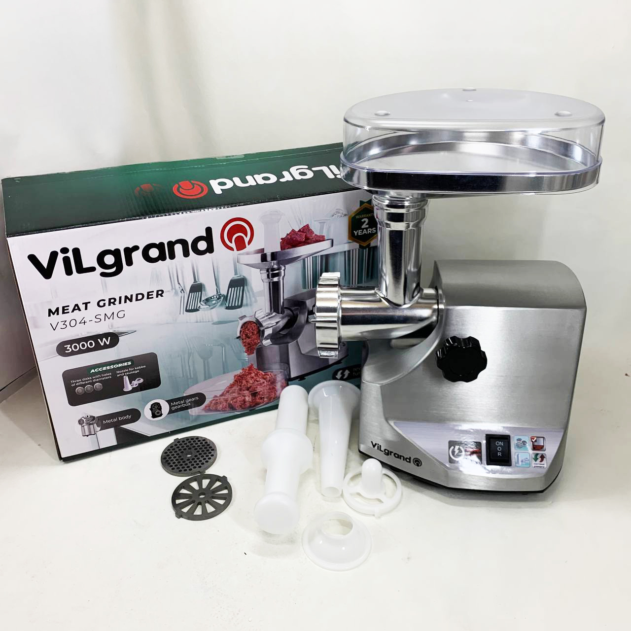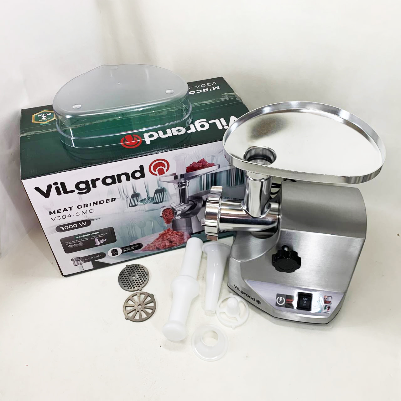 М’ясорубка ViLgrand V304-SMG дозволяє перетворювати на фарш будь-які види м’яса завдяки неймовірній потужності 3000 Вт. Корпус, лоток та кришка лотка даного приладу виготовлені з нержавіючої сталі та міцного пластику, що відрізняються високою зносостійкістю.