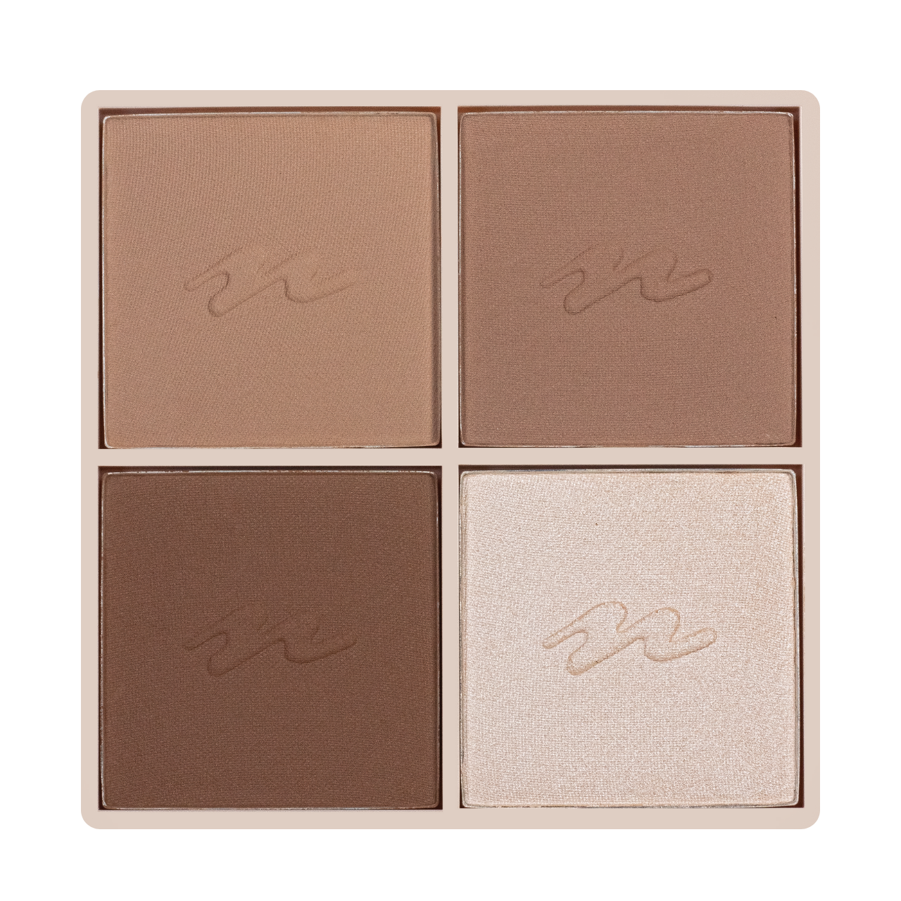 Палітра сухих контурингів і хайлайтерів Neverti Illusion Mix 4 відтінки, без талькуЦя універсальна палетка для контурингу створить ідеальні риси та акценти на вашому обличчі! Мікс трьох відтінків матових скульпторів і одного хайлайтера дає змогу професійно коригувати овал обличчя й підкреслювати його природну красу.Завдяки стійкому пігменту макіяж тримається весь день! Кремова текстура легко розподіляється, забезпечує рівне, гладке покриття.У складі немає тальку, що робить продукт безпечнішим і гіпоалергеннішим. Засіб пройшов дерматологічне дослідження.Спосіб застосування:Нанесіть скульптор на зони, які хочете затемнити, використовуючи пензлик.
