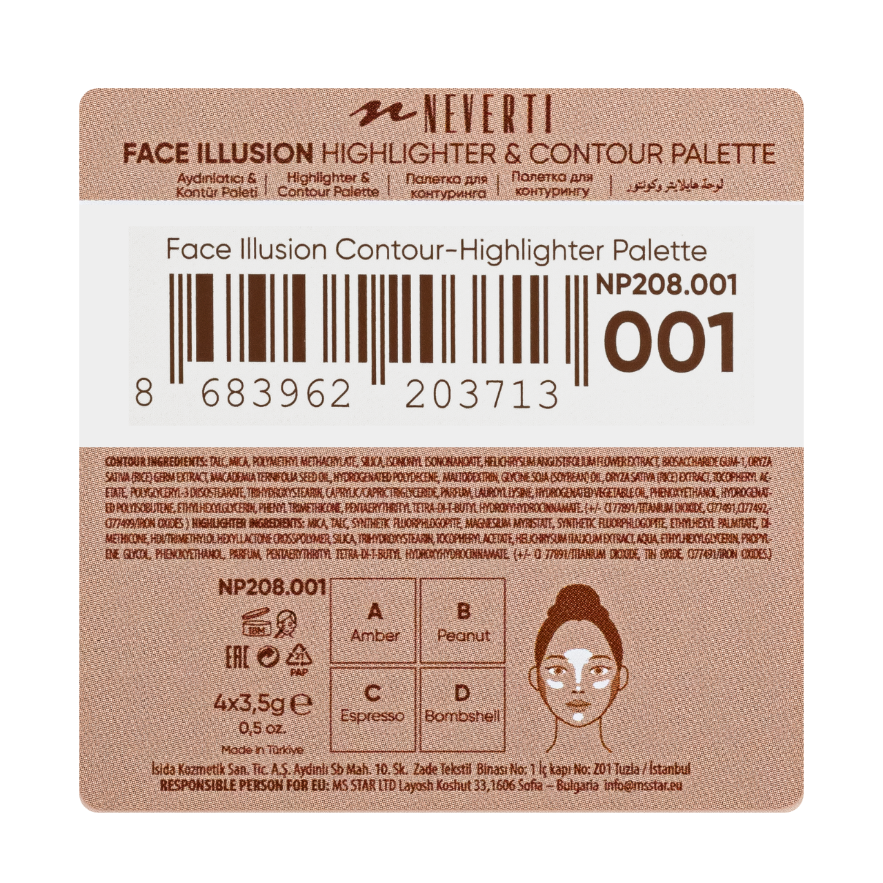 Палітра котурингів і хайлайтерів Neverti Illusion Mix 4 відтінки (NP208)