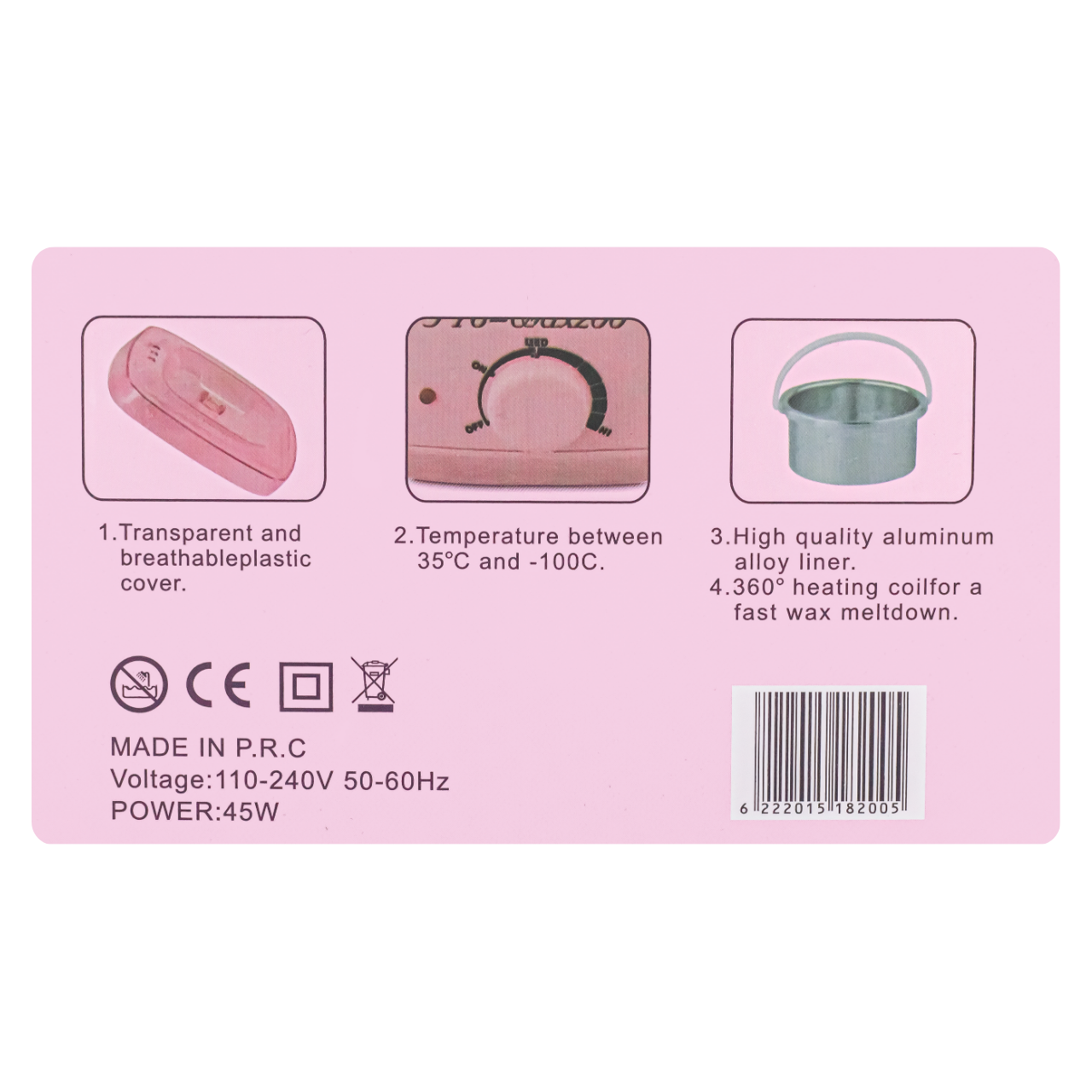 рівномірне розігрівання воску без перегрівання.Температуру нагрівання можна регулювати від 35 до 100 градусів. У спеціальному режимі підтримується задана температура воску або парафіна для комфортного проведення процедури депіляції.Комплектація воскоплава:пластикова кришка;