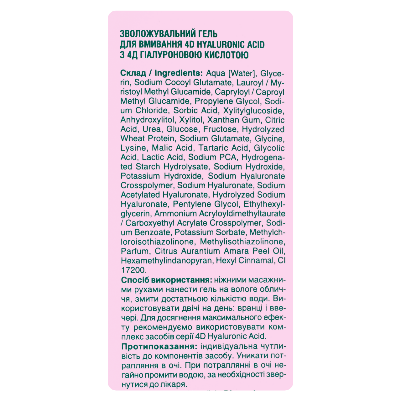 Для досягнення максимального ефекту рекомендується використовувати комплекс засобів серії 4D Hyaluronic Acid.Об'єм: 150 мл