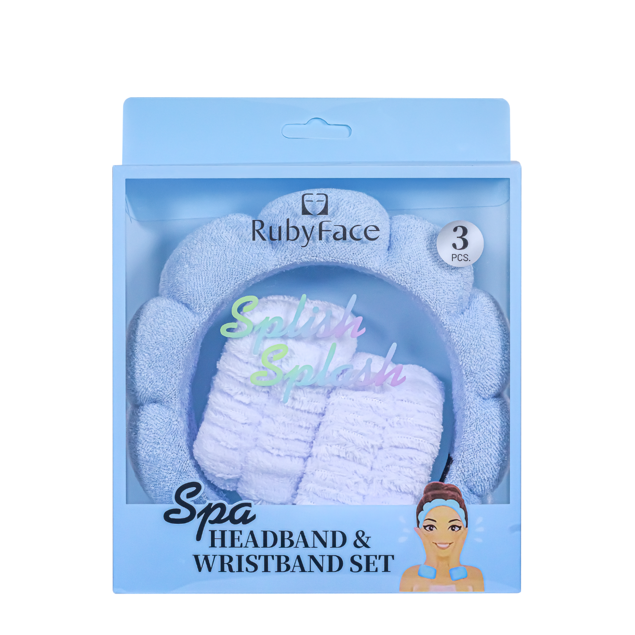 Набір для вмивання — обруч на голову та напульсники (браслети) мікрофібра, Блакитний