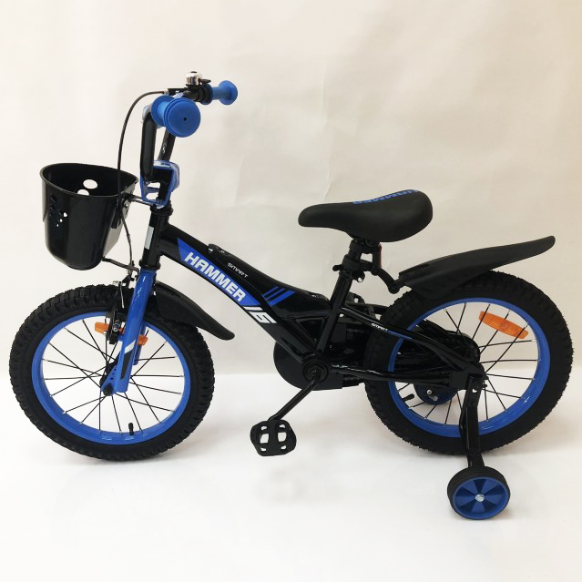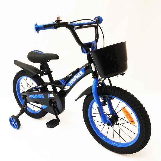 Дитячий двоколісний велосипед Hammer Smart H2021 20 дюймів із бічними колесами, кошиком. Колір: синій