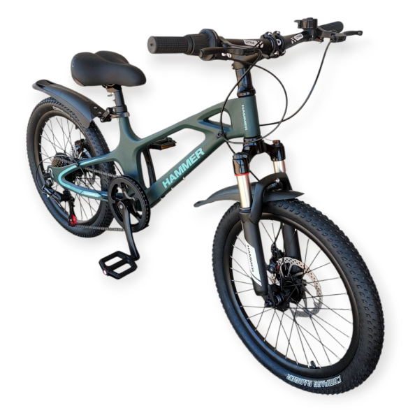 Дитячий велосипед Hammer M-1 20″ графіт – шедевр від відомого виробника, для діток від 6 років, з магнієвою рамою, 2 дисковими гальмами та неперевершеним дизайном рами. Велосипед виконаний за всіма вимогами, що гарантує безпеку дитини. Рама забезпечує стабільність конструкції. Завдяки заниженій позиції рами дитині зручніше сідати на сидіння. Спеціальне рифлення на педалях не дозволить ногам дитини ковзати. Особливість цього велосипеда в тому, що в ньому рама виконана з високотехнологічного легкого і міцного сплаву магнезія і алюмінію, а вилка та колісні обода з водночас надміцного та легкого сплаву алюмінію!