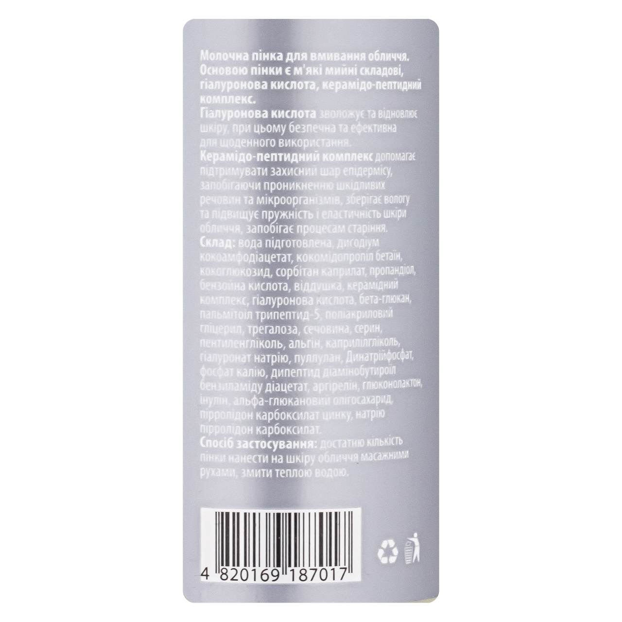 Пінка для вмивання Top Beauty "Молочна" з гіалуроновою кислотою та пептидами 150 мл. Зображення №2