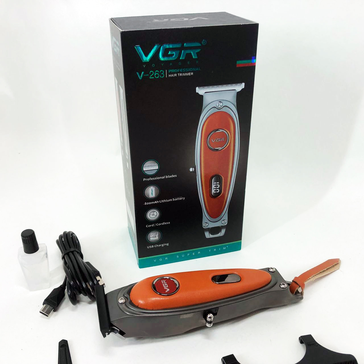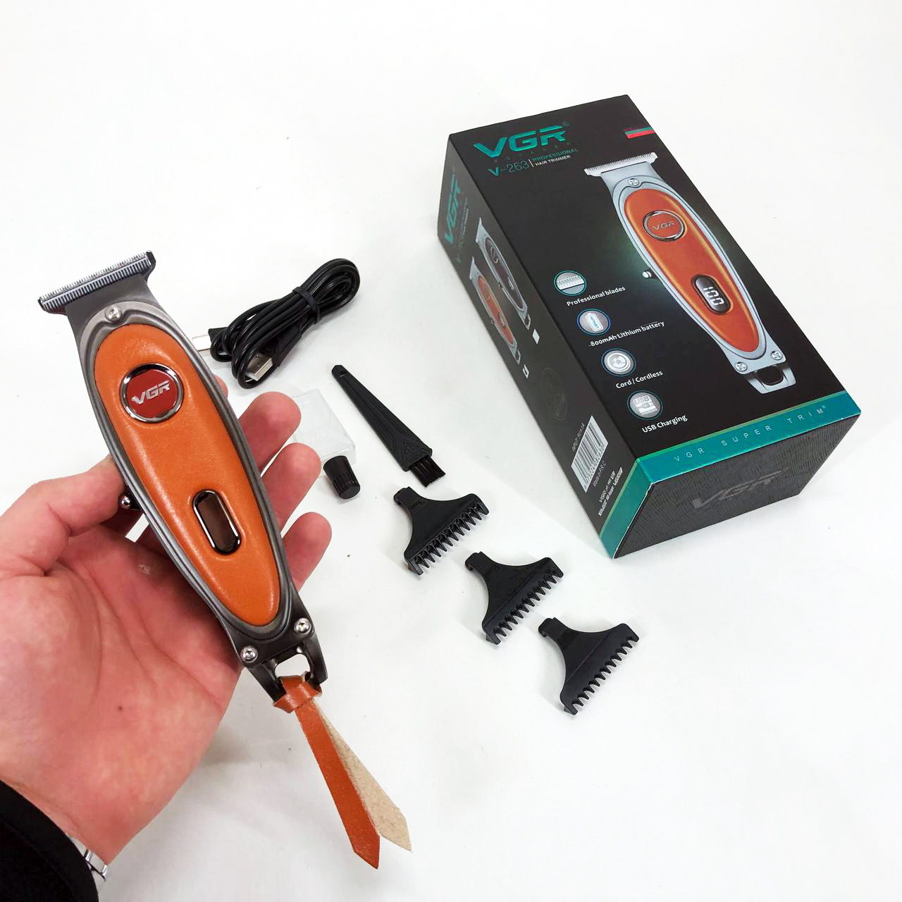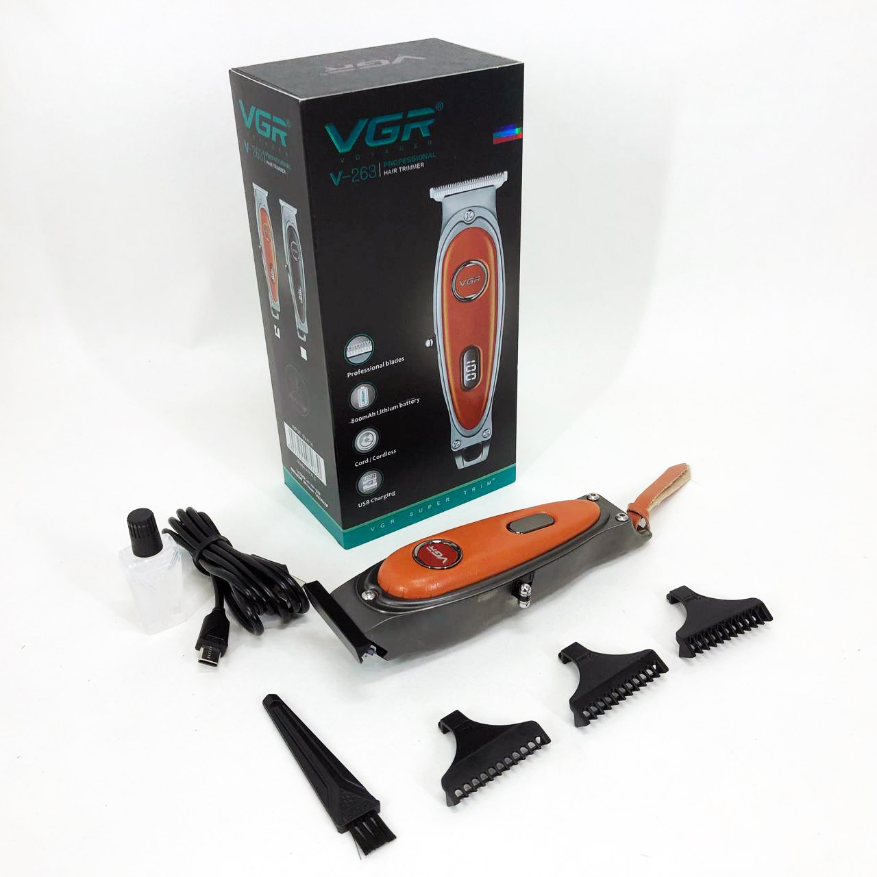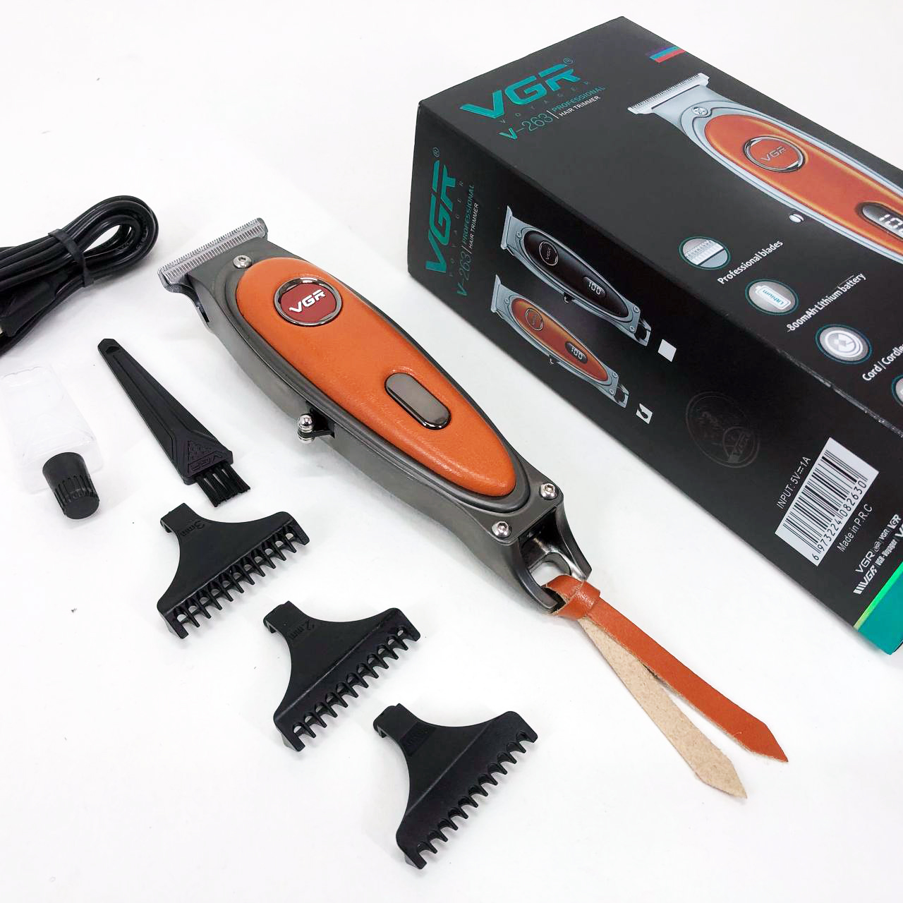 Тример акумуляторний VGR V-263 – це потужний та надійний інструмент для професійного та домашнього використання. Вона забезпечує точність і комфорт завдяки гострим лезам з DLC покриттям та вбудованому роторному двигуну, що працює зі швидкістю 7000 обертів на хвилину. Ця машинка дозволяє стригти волосся на різну довжину завдяки 4 насадкам, що ідеально підходять для створення стильних зачісок.