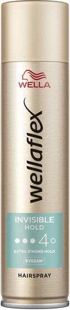 Wellaflex Invisible Hold, ніжний до шкіри голови, дерматологічно протестований лак для волосся, що допомагає створити об'ємне і природне на вигляд укладання. Кілька розбризкувань - це все, що вам потрібно, щоб отримати надсильну фіксацію, яка триватиме до 48 годин, не роблячи волосся липким або жорстким. Цей веганський спрей не містить інгредієнтів тваринного походження, що забезпечує захист від ультрафіолетового випромінювання.