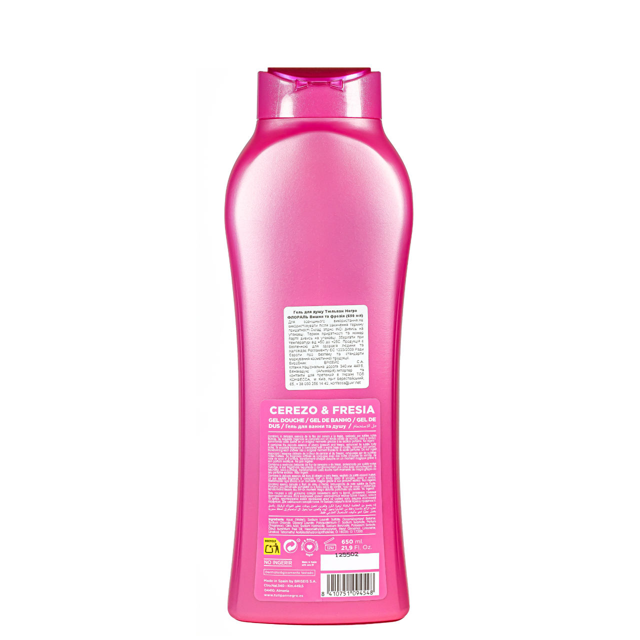 Парфумований гель для душу + піна для ванни Cerezo&Fresia від Tulipan NegroПодаруйте своїй шкірі м'яке очищення та чарівний аромат із нотами вишні та фрезії, відтіненими нотками тропічного кокоса, ванілі та амбри. Він полонить вас своєю солодкою ніжністю та перетворює щоденну рутину на унікальний момент справжнього задоволення.Цей гель для душу не тільки дбайливо доглядає тіло, але й наповнює ванну кімнату атмосферою релаксу. Його можна використовувати також як піну для ванни — ідеально для зняття напруження після важкого дня.Переваги:гель і піна для купання в одному флаконі; ніжна формула, що робить шкіру шовковистою та сяйливою; економне сімейне паковання — вистачить надовго; розкішний східний аромат, захопливий із першої нотки.Гель для душу Tulipan Negro "Вишня та Фрезія" — це ніжність, чистота й ароматна насолода в кожній краплі.Як використовувати:Як гель для душу: нанесіть на вологу шкіру, спіньте, змийте водою. Як піна для ванни: додайте під струмінь води для створення пишної ароматної піни.Об'єм: 650 мл