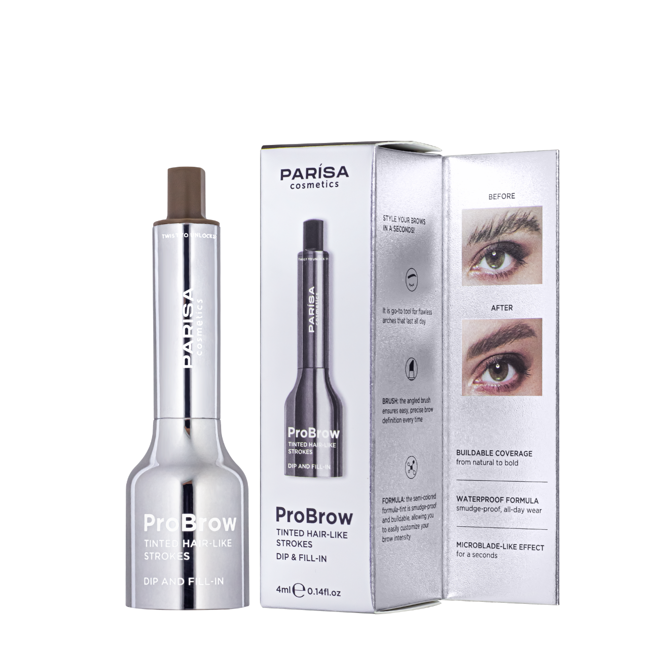 Стійкий тінт для брів Parisa Cosmetics ProBrowТінт для брів Parisa ProBrow — це зручний засіб для створення чітких, натуральних або виразних брів без зусиль. Завдяки спеціальному аплікатору та стійкій формулі, він імітує волоски мікроблейдингу, надаючи бровам ідеальної форми та щільності.Спосіб використання:Натисніть на кнопку на кришці, щоб набрати гель на пензлик, і заповніть брови легкими штрихами — від основи до хвостика.