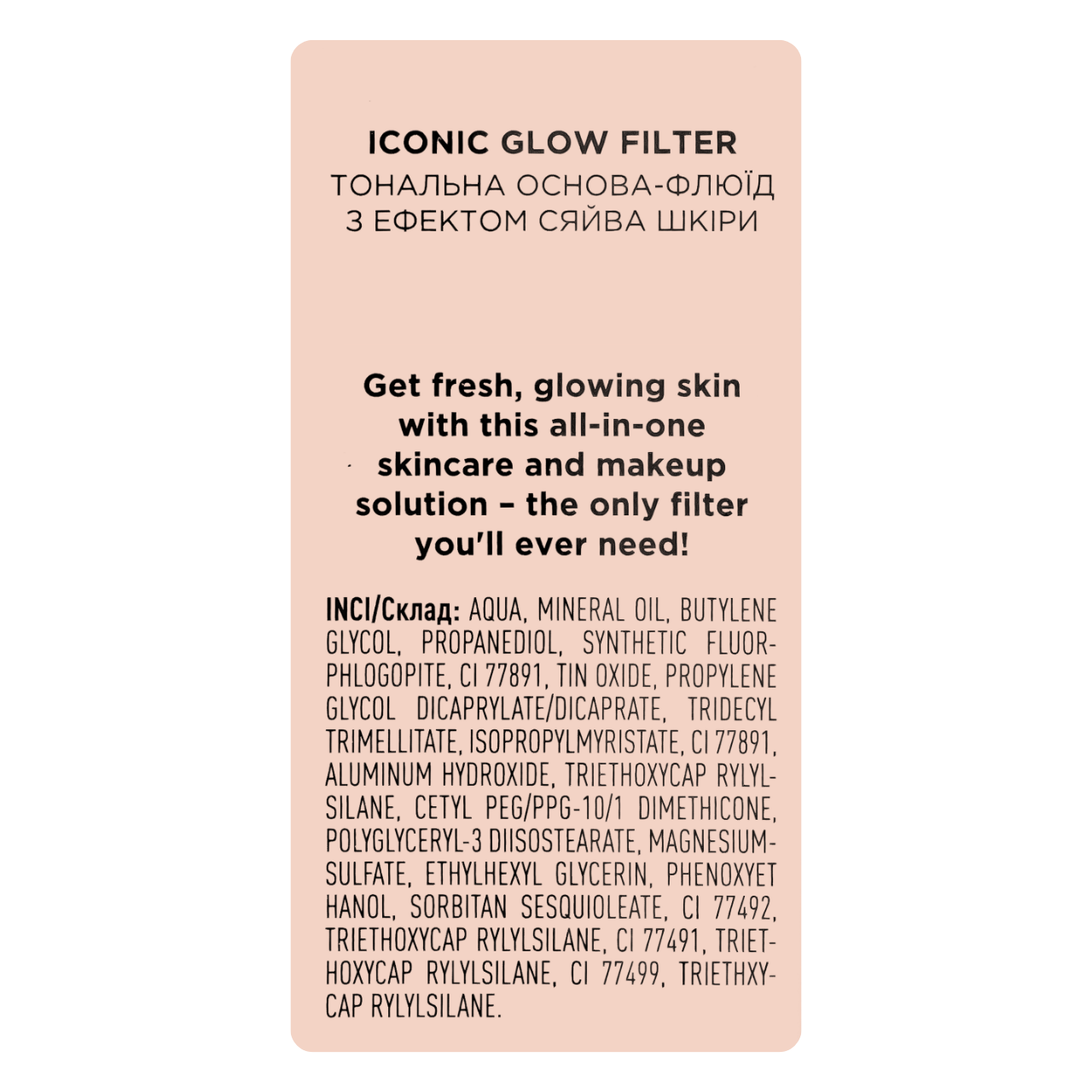 Сяйна тональна основа-флюїд для обличчя Parisa Cosmetics Iconic Glow Filter з ефектом сяйва шкіриТональна основа з ефектом вологого блиску (glass skin) — ідеальний вибір для природного макіяжу. Створює модний фініш для гладкої, зволоженої шкіри, немов без макіяжу.Невідчутна на обличчі, легка флюїдна текстура рівномірно розтушовується і тримається цілий день, не залишаючи липкості або жирного блиску. Формула без спирту для всіх типів шкіри, включно з чутливою. Палітра містить різноманітні відтінки — від світлих до засмаглих тонів.Переваги:без спирту та парабенів;