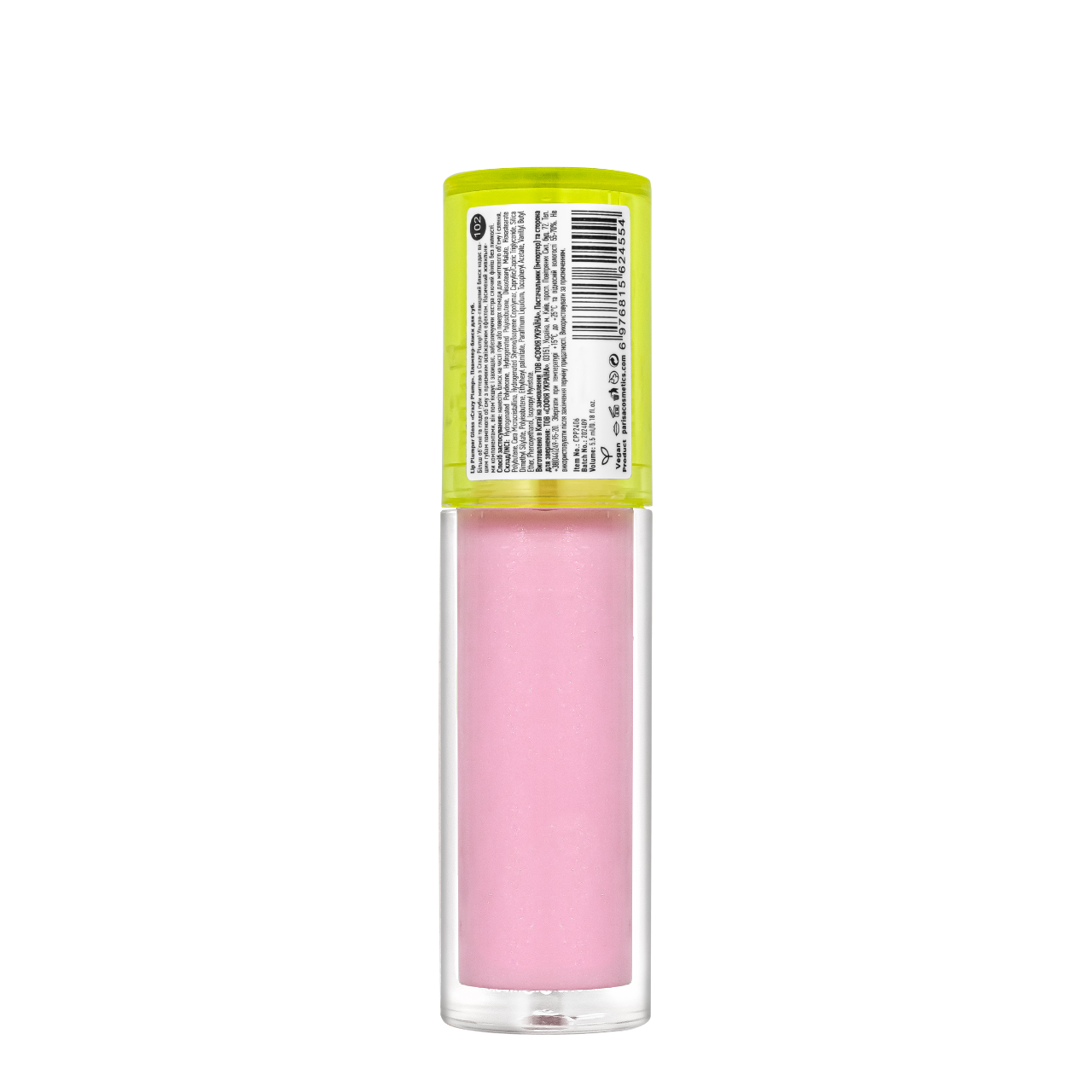Блиск-плампер для об'єму губ Parisa Cosmetics Crazy Plump, 5,5 мл, 102 Rose sparkle Світло-рожевий з шимером