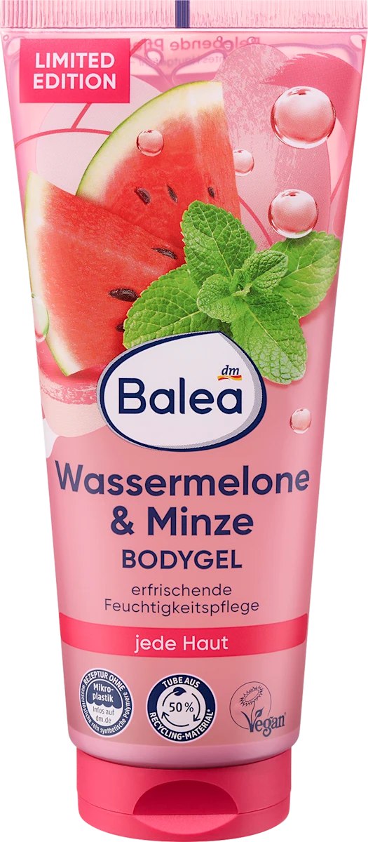 Гель для тіла Balea з кавуном та м'ятою пропонує бадьорий догляд, який освіжає шкіру. Збагачений екстрактом кавуна та м'яти, він забезпечує шкіру інтенсивним зволоженням та залишає відчуття приємної свіжості. Ідеально підходить для щоденного використання.