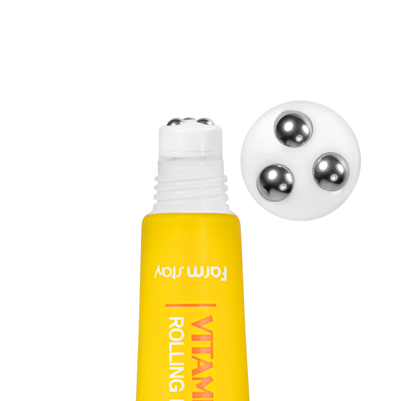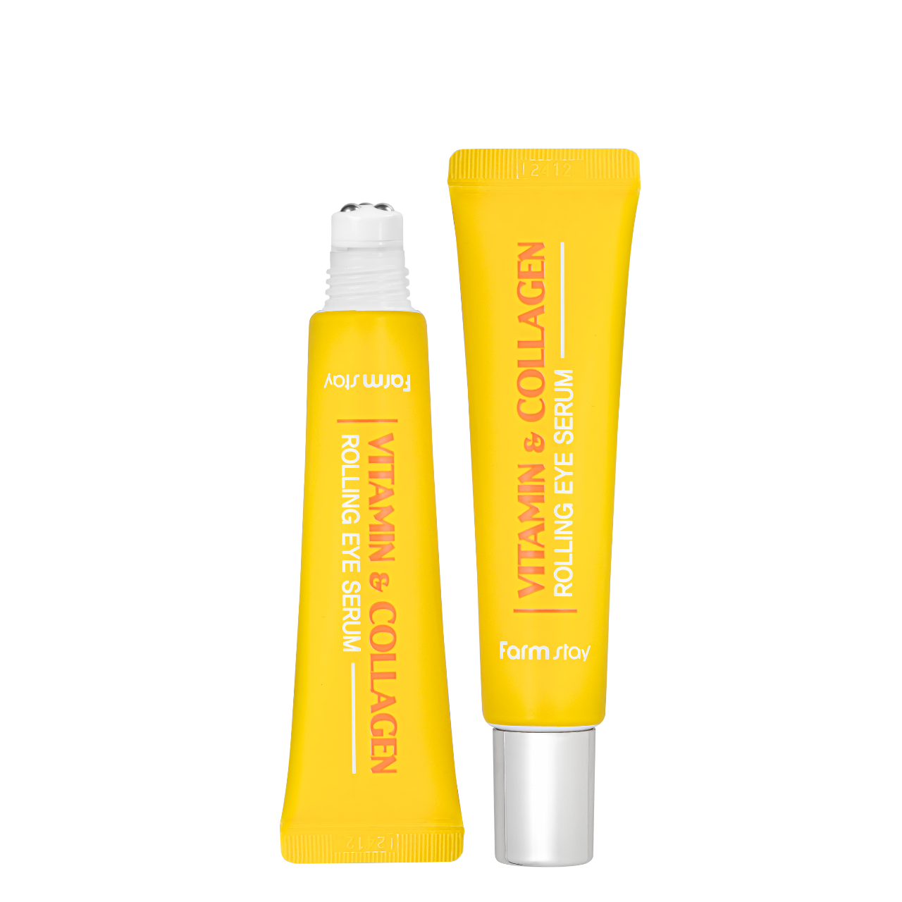 Омолоджувальна сироватка для шкіри навколо очей FarmStay Vitamin&Collagen Rolling Eyeserum з колагеном, вітаміном С, ЕРоликовий серум для шкіри навколо очей із вітамінами та колагеном від корейського бренда Farmstay забезпечує інтенсивне зволоження, боротьбу з темними колами та ознаками втоми в зоні під очима.Серум із вітамінами C і E, морським колагеном і натуральними екстрактами доглядає за ніжною шкірою навколо очей, надає їй свіжості, пружності та сяйва. Вбудований роликовий аплікатор не тільки полегшує нанесення, але й м'яко масажує, покращуючи мікроциркуляцію та зменшуючи набряки, темні кола.Як працюють активні компоненти сироватки під очі:вітаміни C і Е — потужні антиоксиданти, що захищають шкіру від стресу, освітлюють і стимулюють регенерацію;