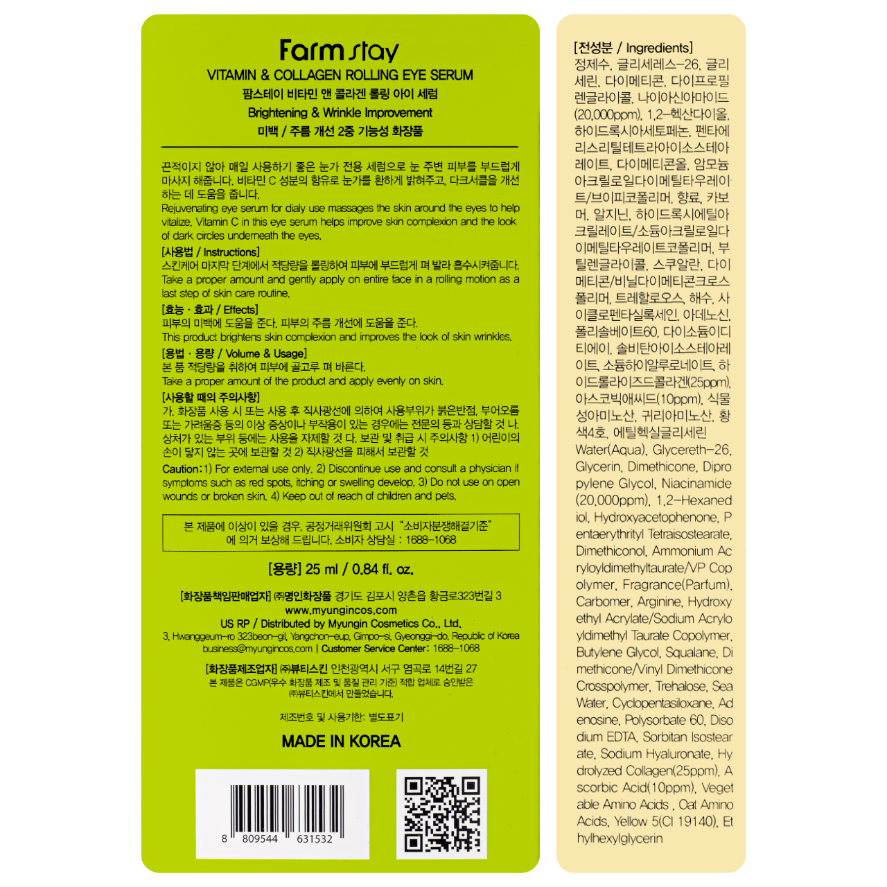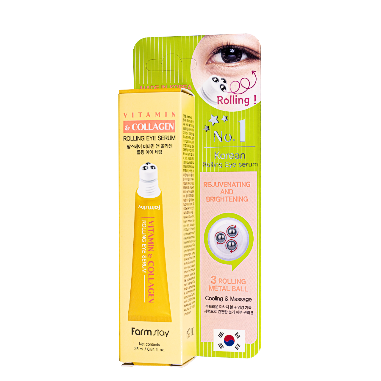 Сироватка-ролер для шкіри навколо очей FarmStay Vitamin & Collagen з колагеном 25 мл