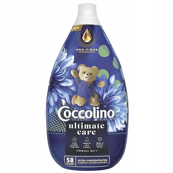 Ополіскувач для одягу Coccolino Ultimate Care "Fresh Sky" допомагає зменшити утворення мініатюрних катіонів, які можуть залишатися після прання, тим самим роблячи ваш одяг приємним і ніжним на шкірі.