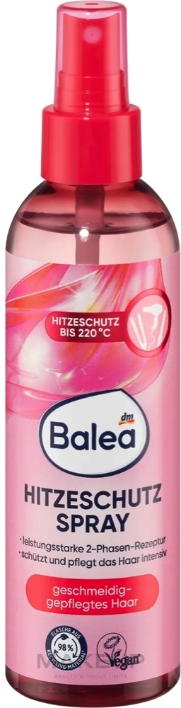 Двофазний термозахисний спрей Balea забезпечує повний захист від сильної спеки. Ні фен, ні випрямляч, ні плойка не зашкодять волоссю. Формула догляду з пантенолом і захисним протеїном доглядає за волоссям. Ультралегкі масла інтенсивно живлять волосся, не обтяжуючи його. Для гладкого, блискучого волосся.