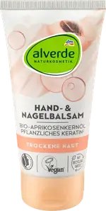 Бальзам для рук і нігтів з органічною олією абрикосових кісточок і рослинним кератином1 від alverde NATURKOSMETIK балує шкіру і забезпечує еластичність рук. Формула з органічним маслом ши, органічною олією абрикосових кісточок і рослинним кератином1 забезпечує зволоження та розгладжує сухі руки, а також потріскані та сухі кутикули. Також підтримується еластичність нігтів, а напружені нігті захищені від ламання. Рецепт без мікропластику та водорозчинних, чисто синтетичних полімерів. 1Гідролізовані рослинні білки, що нагадують структуру тваринного кератину. Кератин є основним компонентом нігтів.
