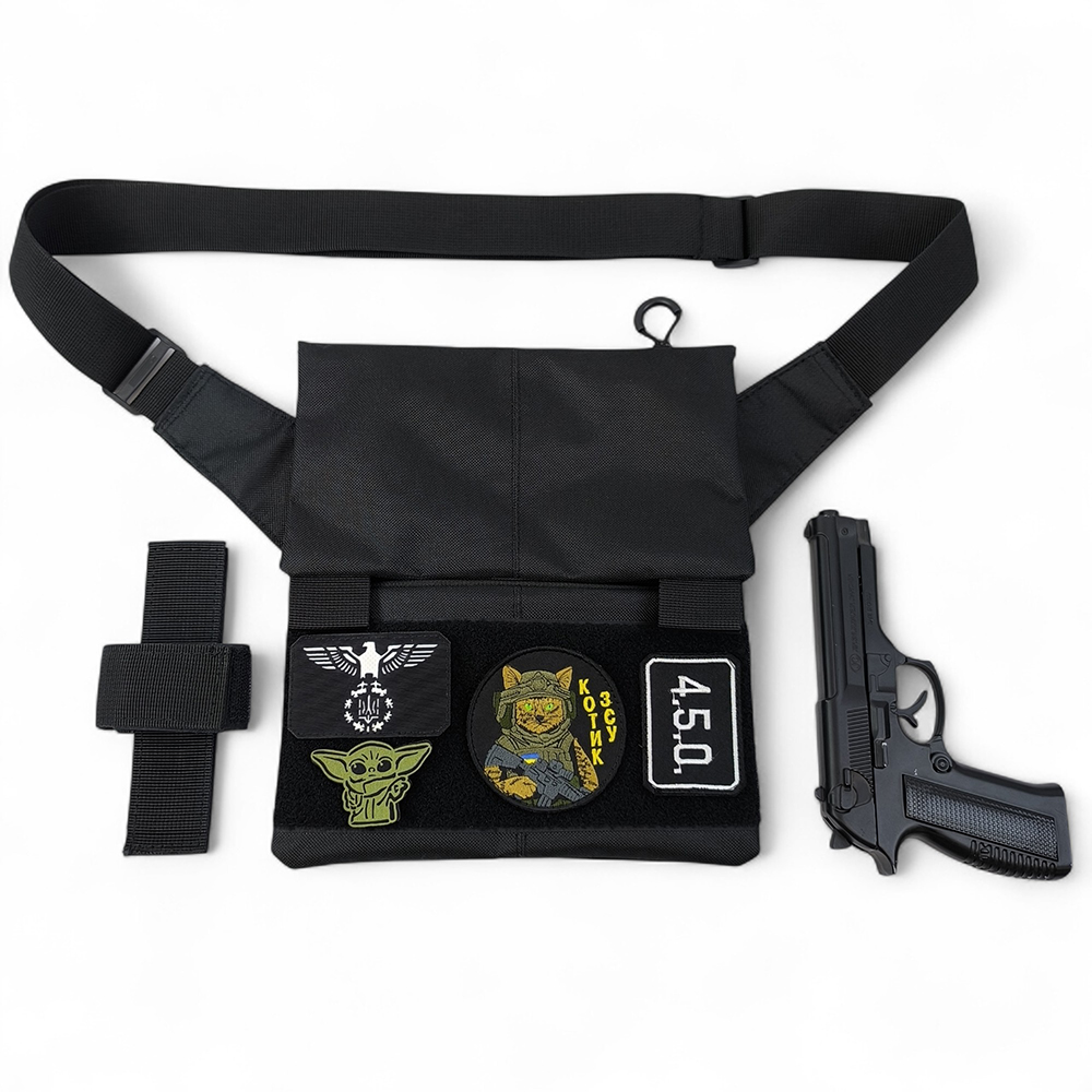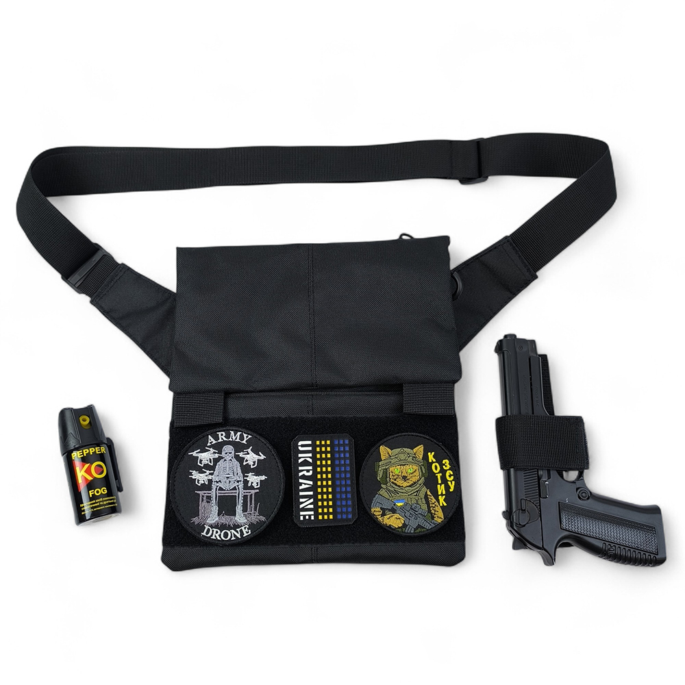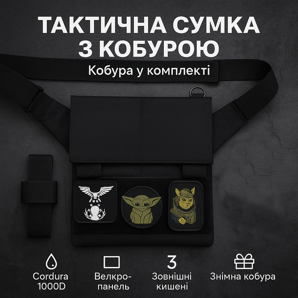 Сумка месенджер З КОБУРОЮ. Тактична сумка з тканини, 3 кишені, патч-панель, Cordura