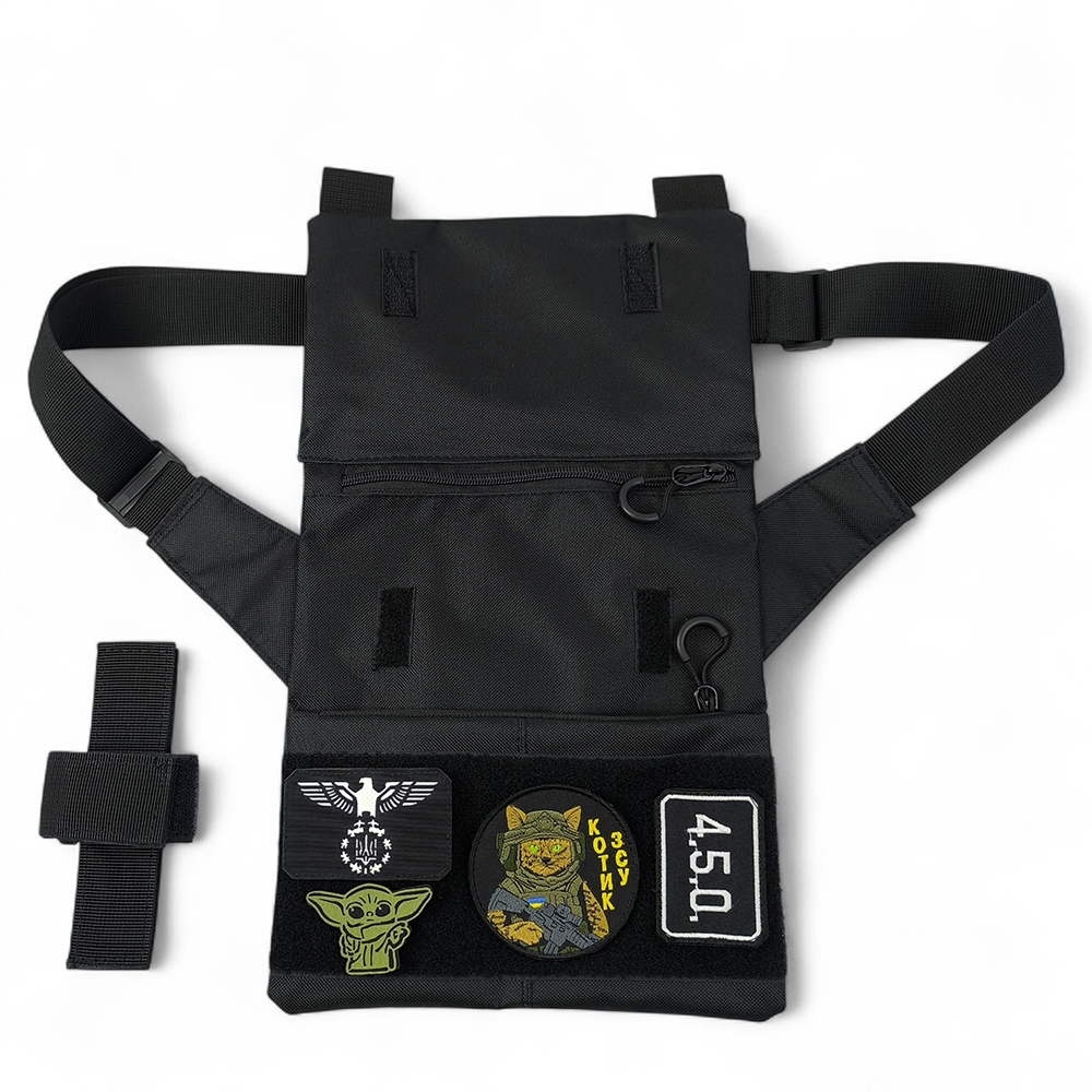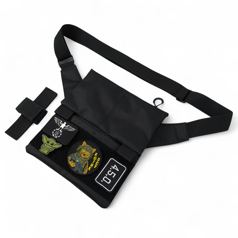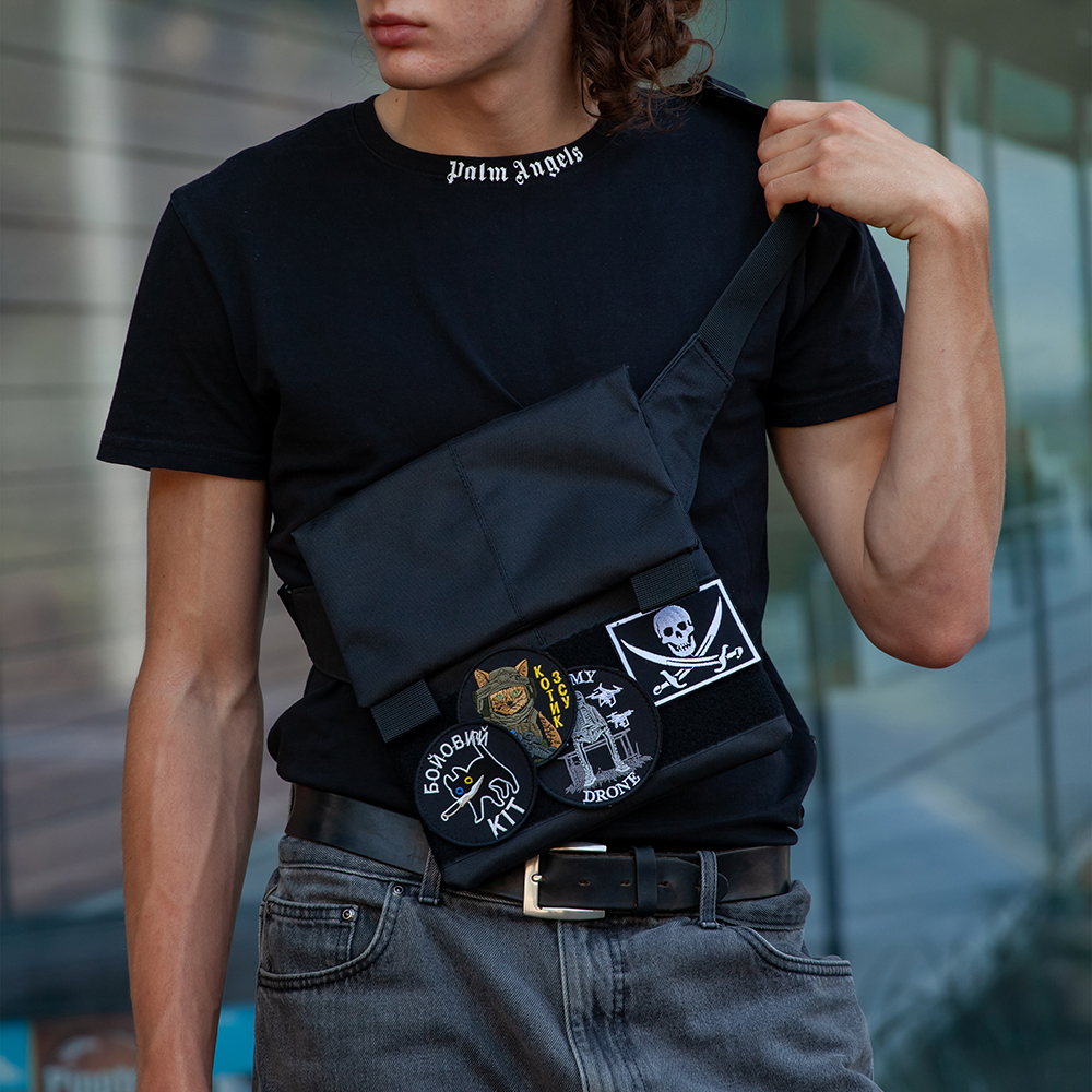 Сумка виготовлена з надміцної водонепроникної тканини Cordura 1000D — матеріал, що витримує інтенсивне використання та несприятливі погодні умови. Завдяки трьом зовнішнім відділенням, знімній кобурі (у подарунок) та великий патч-панелі, вона підходить як для професійного використання, так і для повсякденного носіння молоддю.
