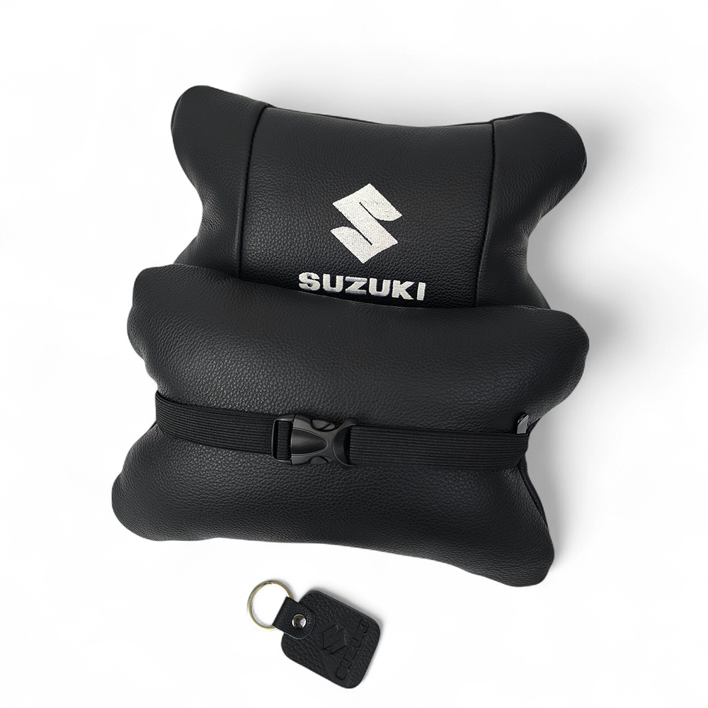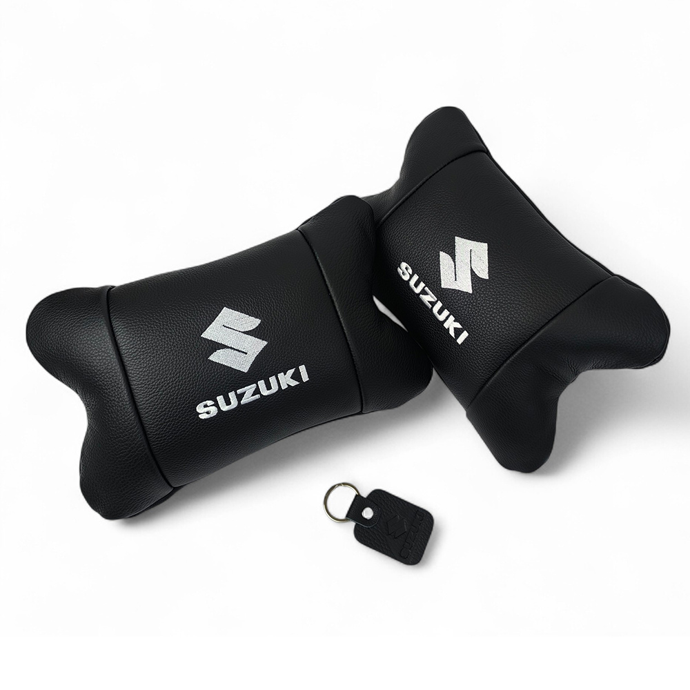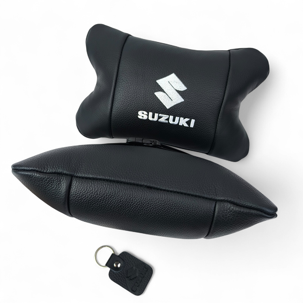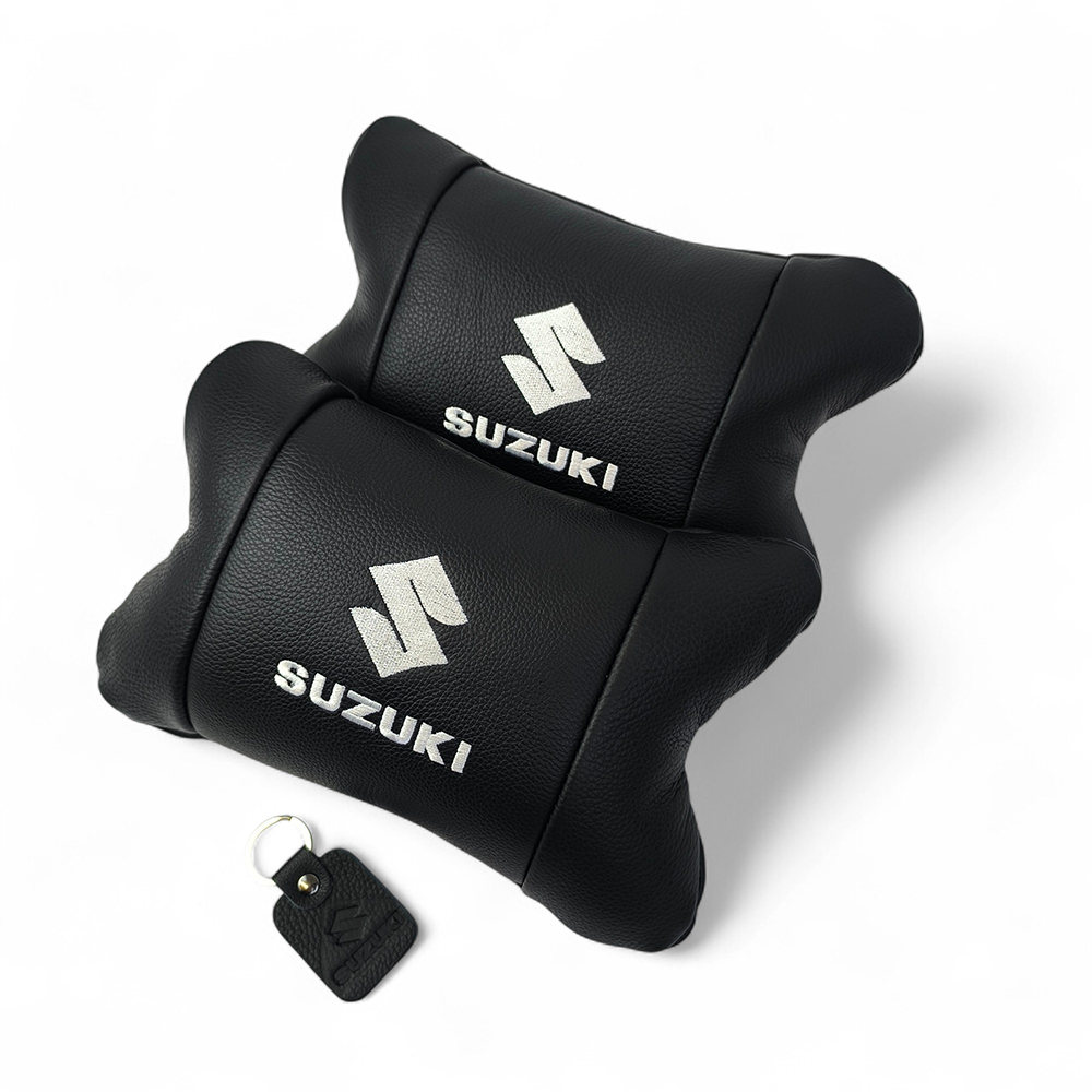 Набір шкіряних подушок Suzuki з вишивкою логотипу + брелок у подарунок для авто