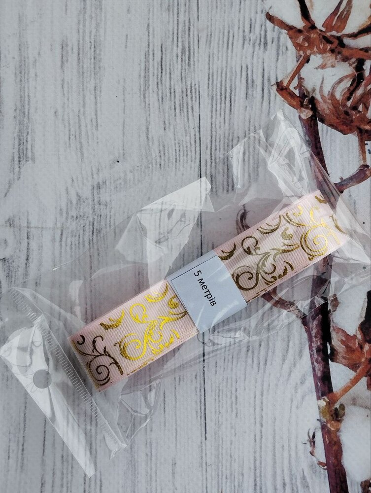Стрічка декоративна репс 2,5 см Візерунок рожева+золото 5 м.