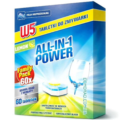 W5 Таблетки для посудомийки All-in-one POWER 60шт.