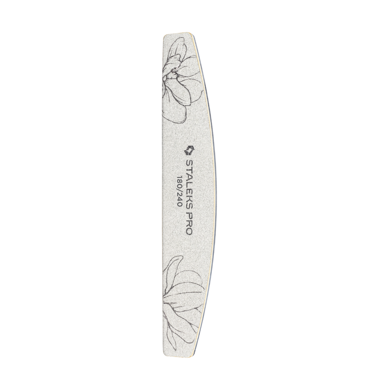 Мінеральна пилка-півмісяць для натуральних і штучних нігтів одноразова Staleks PRO 162 ммБагатофункціональна мінеральна пилочка півмісяцем — ідеальний інструмент для точного та дбайливого манікюру та педикюру. Завдяки ергономічній формі та якісному абразиву вона забезпечує делікатне коригування форми нігтя без ризику пошкодження нігтьової пластини.Пилка має дві робочі поверхні з однаковою або різною абразивністю залежно від обраної вами характеристики. Також ви можете вибрати жорсткість абразиву для натуральних і нарощених нігтів. Не ушкоджує пластину, не викликає мікротріщин. Підходить для професійного та домашнього манікюру та педикюру.Спеціальне покриття не забивається органічним пилом під час роботи М'яка основа зменшує тиск на ніготь.Розмір: 162×25 мм