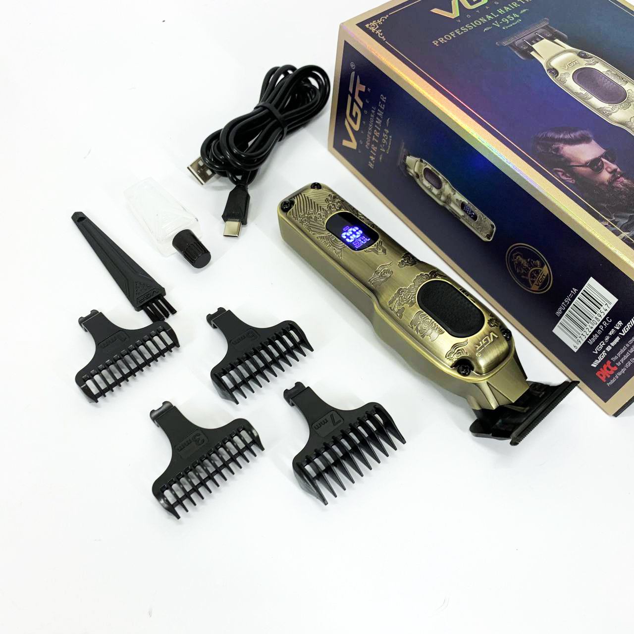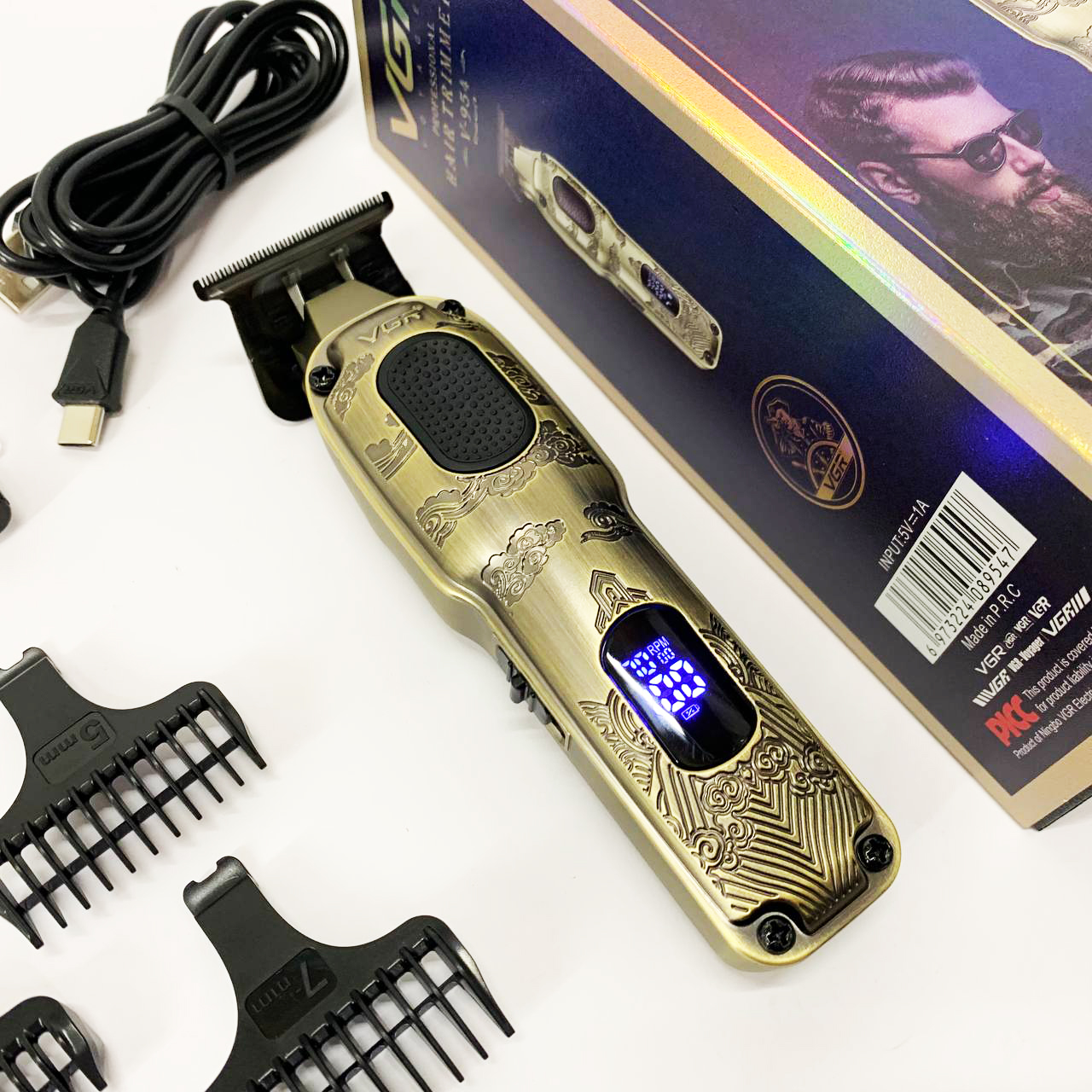 Модель VGR V-954 оснащена потужним роторним двигуном з високою частотою роботи і невеликим рівнем шуму. Мотор працює на частоті 7000 оборотів в хвилину, що забезпечує максимально чисту стрижку навіть найгустішого і товстого волосся. На корпусі розміщено спеціальний LED дисплей, на якому відображається розрахунковий час роботи від акумулятора, а також додаткова індикація необхідності мастила/очищення ножового блоку.