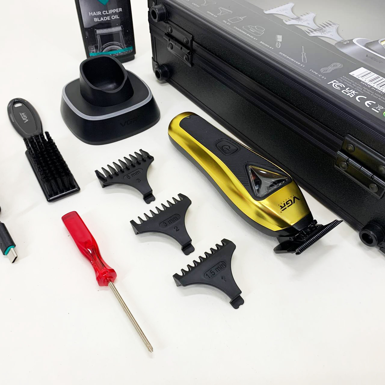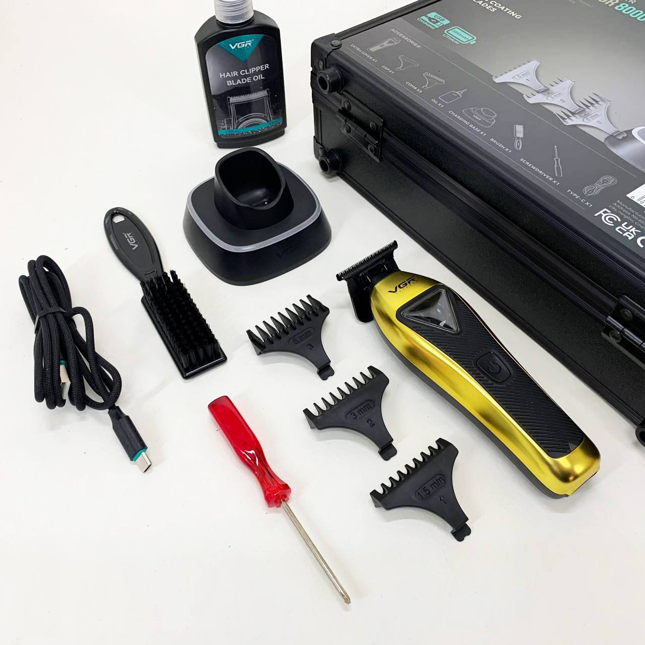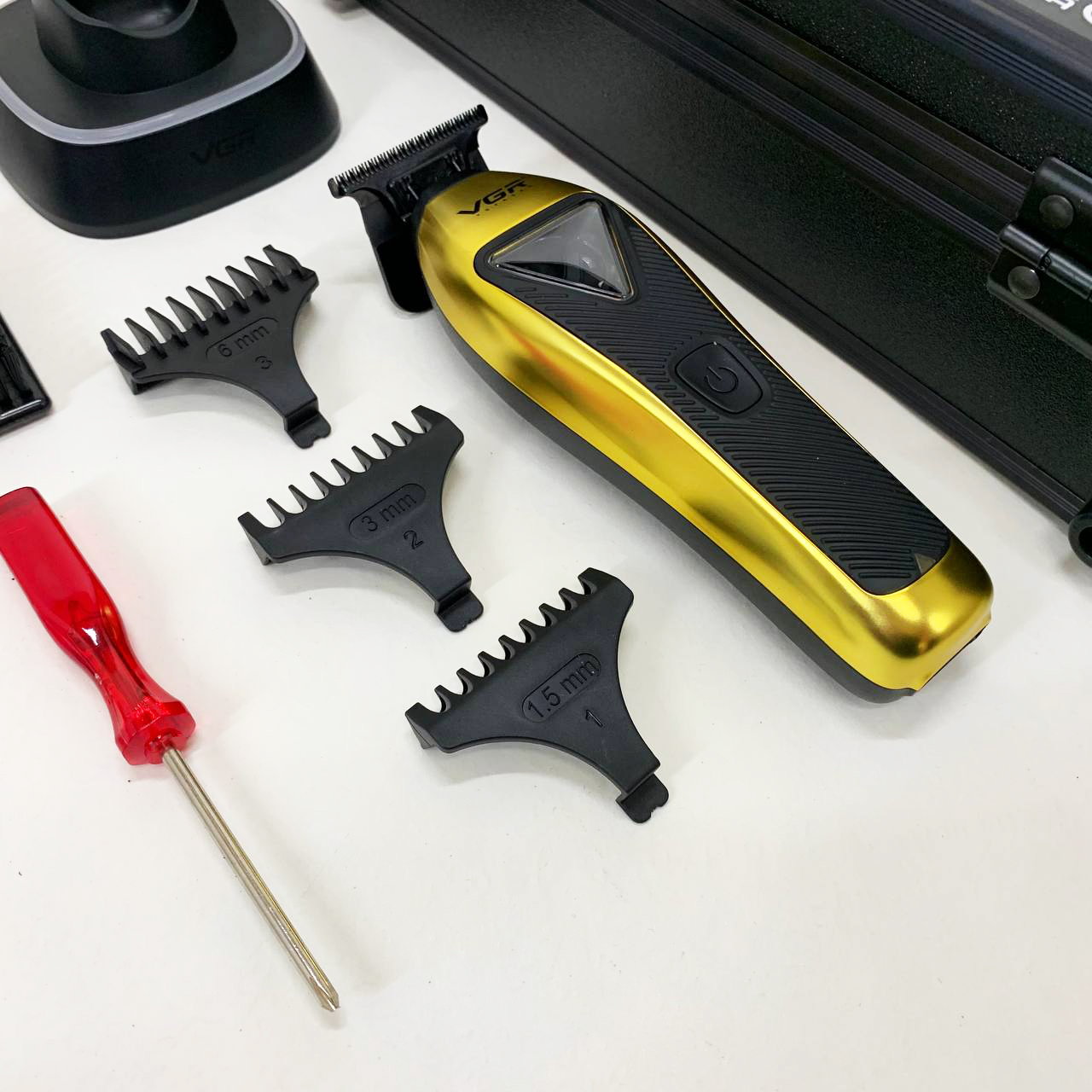 Тример VGR V-994, акумуляторний, мотор MAGLEV VECTOR 3.0, 3 насадки, зарядна станція, кейс