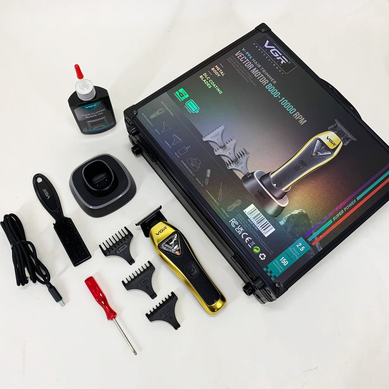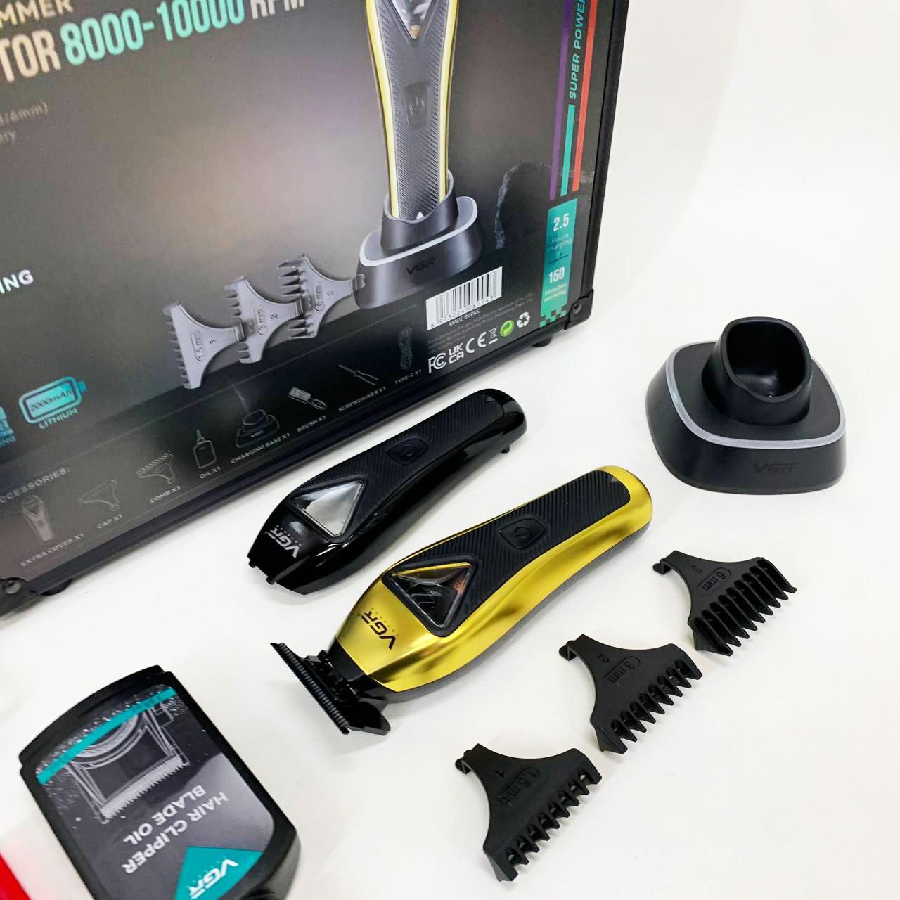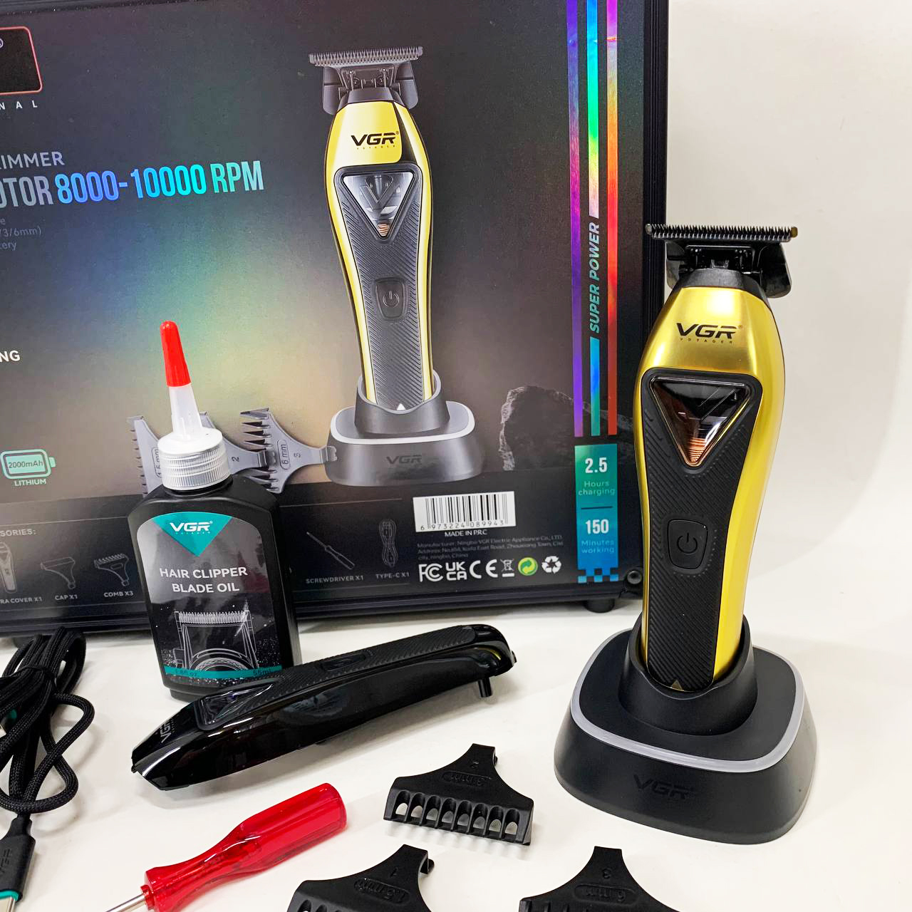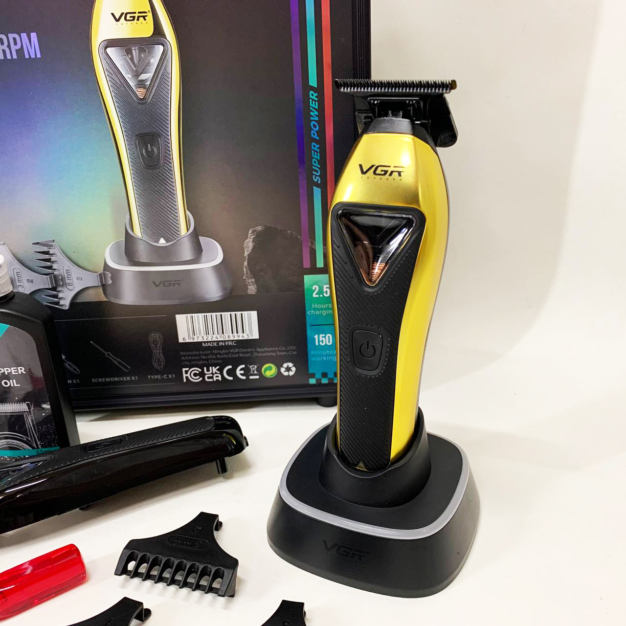 Профессиональный аккумуляторный триммер VGR V-994 с передовым мотором MAGLEV VECTOR 3.0 на магнитной левитации, обеспечивающий высокую скорость и долговечность. Идеален для стрижки волос, бороды и усов, а также для окантовки и детализации.