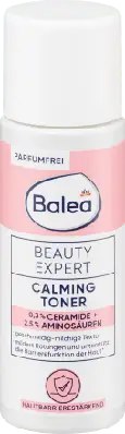 Balea Beauty Expert пропонує ефективний догляд з концентрованими інгредієнтами, оптимально підібраними до потреб шкіри. Кераміди є ключовими компонентами шкірного бар'єру. Неушкоджений бар'єр забезпечує захист від втрати вологи та негативного впливу навколишнього середовища. Амінокислоти необхідні для шкіри, зволожують її та сприяють її регенерації. Формула з 0,3% керамідів та 2,5% амінокислот підтримує захисний бар'єр шкіри та її регенерацію. Тонік допомагає при сухій шкірі та ознаках подразнення, зменшує існуюче почервоніння та запобігає появі нових подразнень.