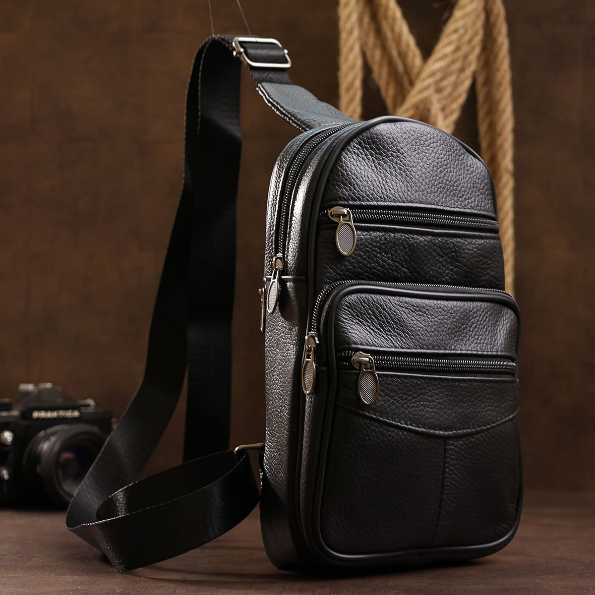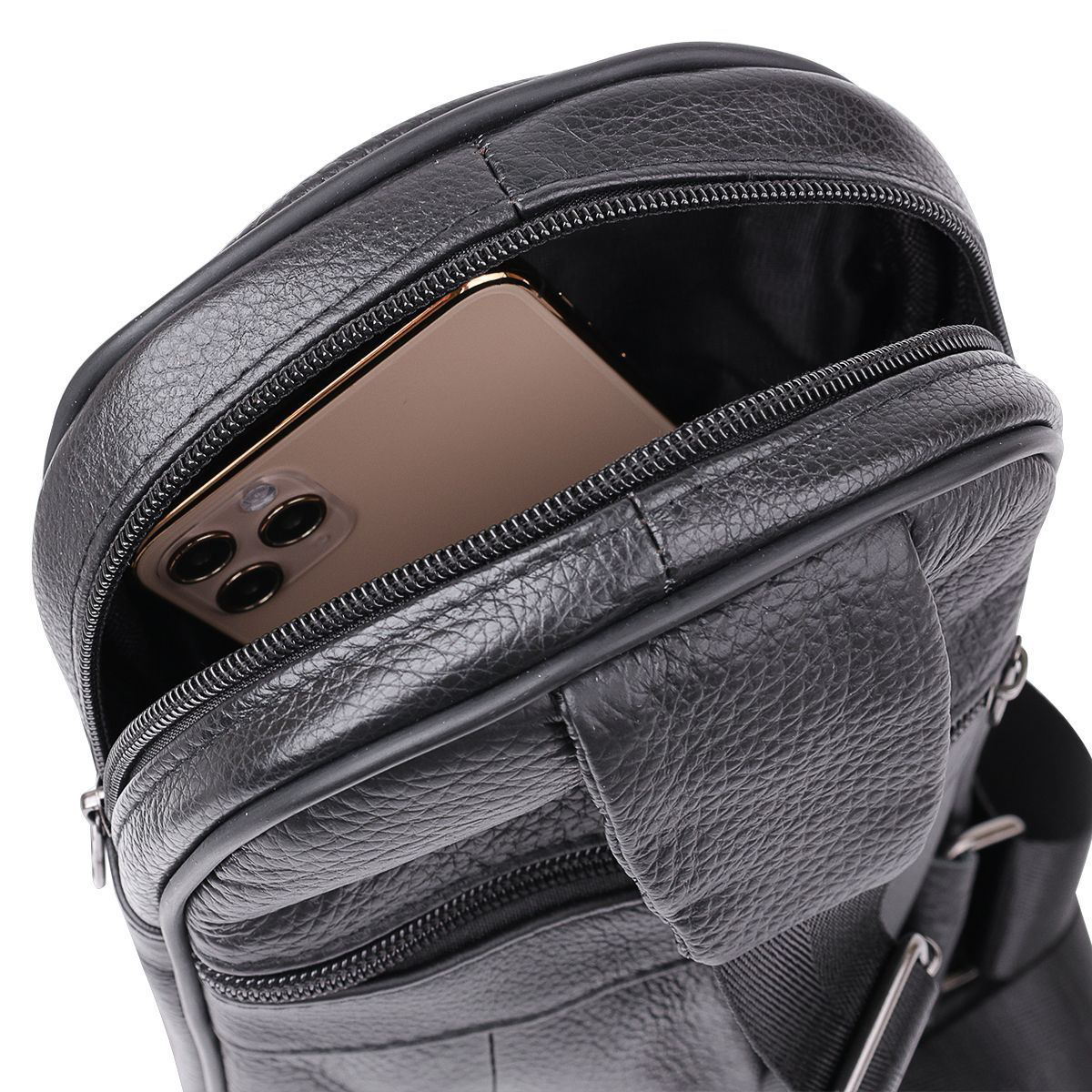 Чоловіча сумка з натуральної шкіри, тактична сумка - месенджер чорна, тактична сумка на груди
