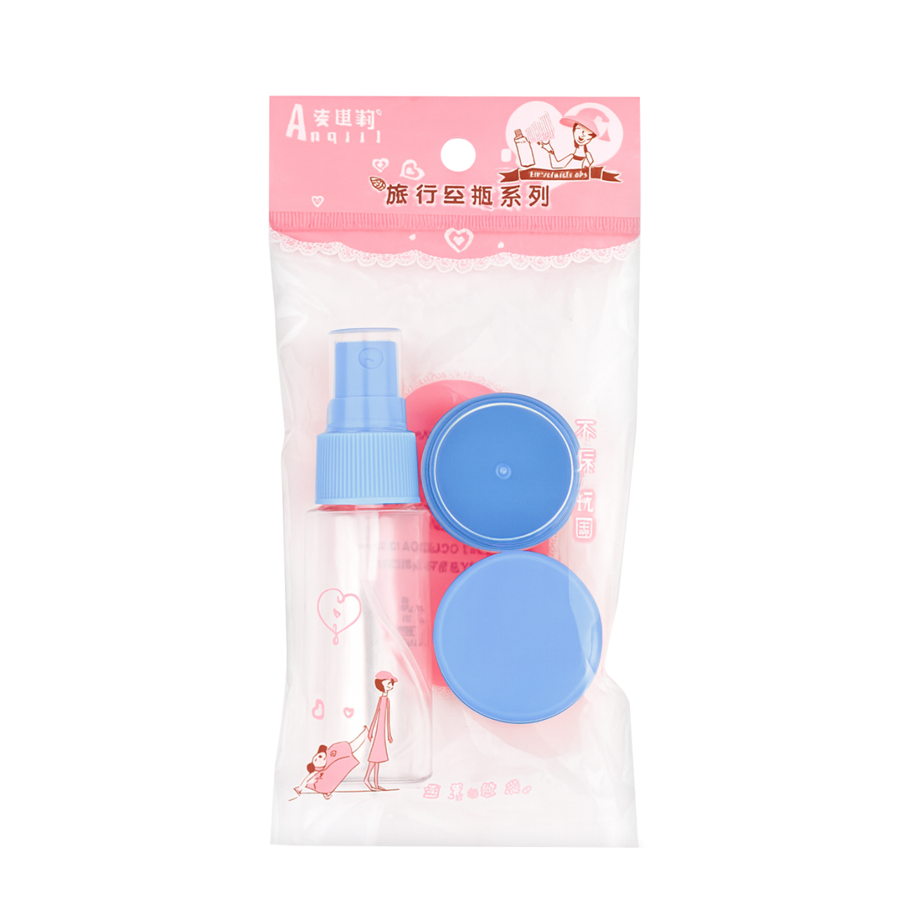 Дорожній набір туалетного приладдя - пляшечка-спрей і баночки (1620), Синій. Зображення №2